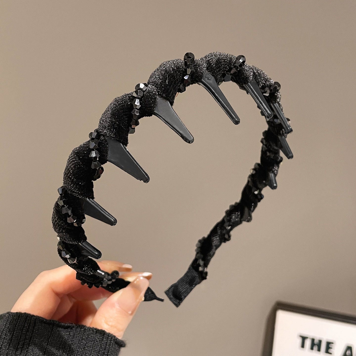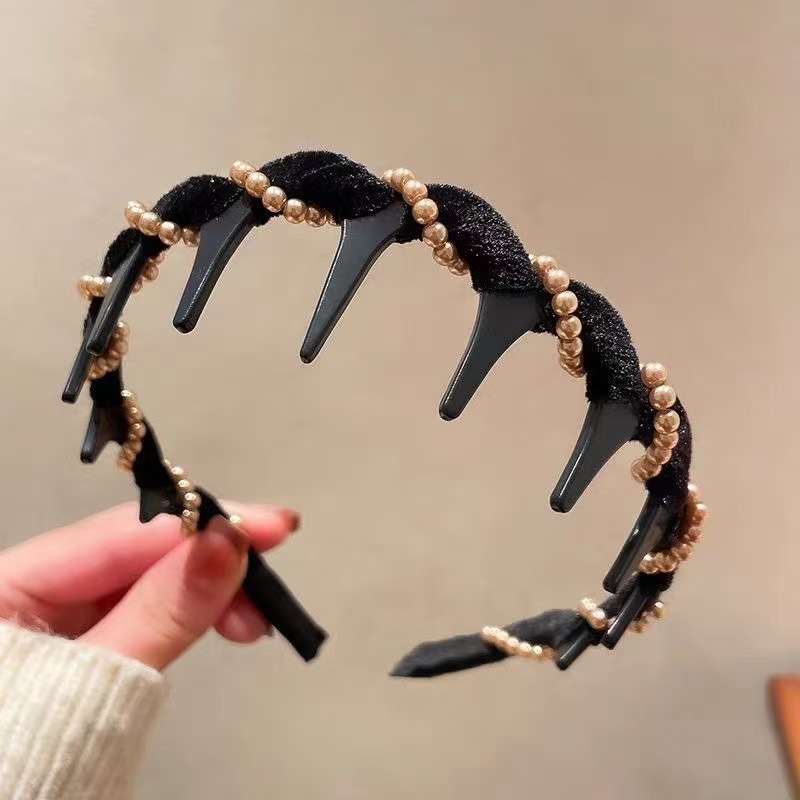 velvet black bead headband, black