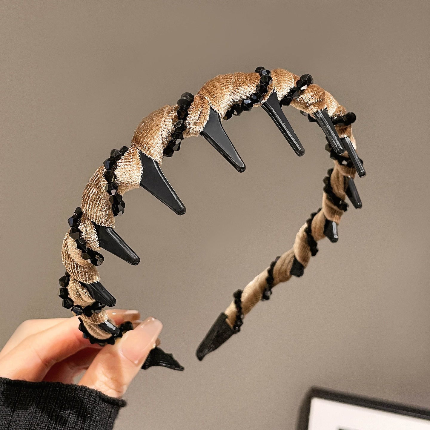 velvet black bead headband, coffee color