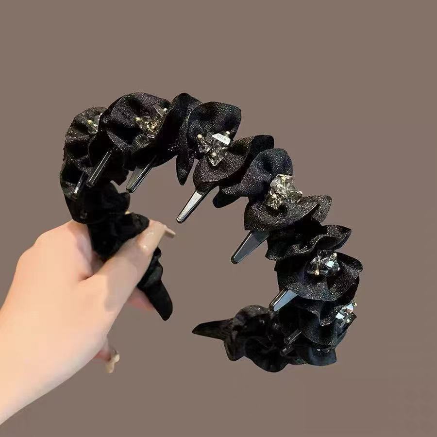 black color & pleats crystal hairband