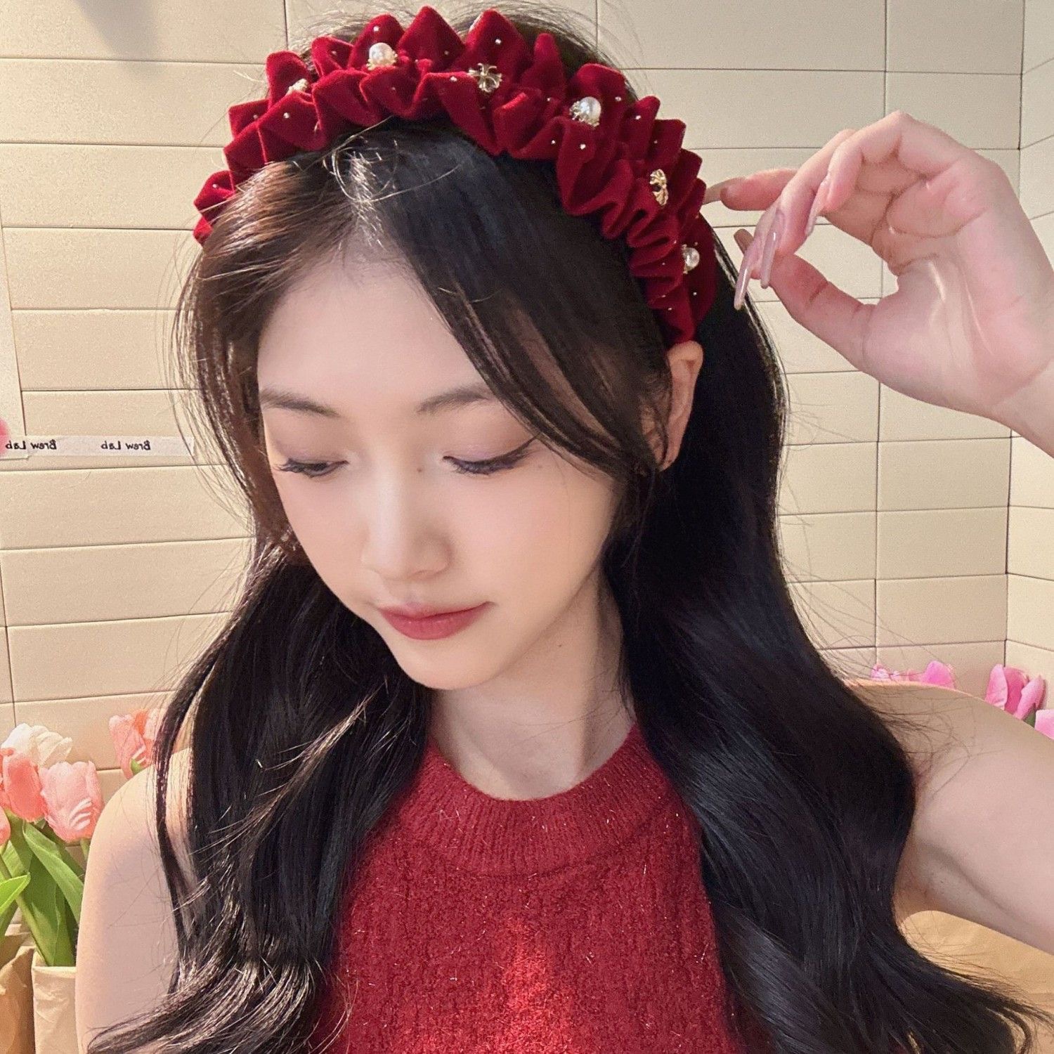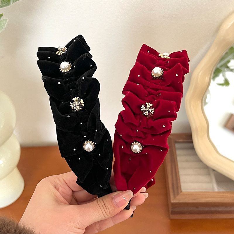 #1 sophisticated velvet pleated headband — red