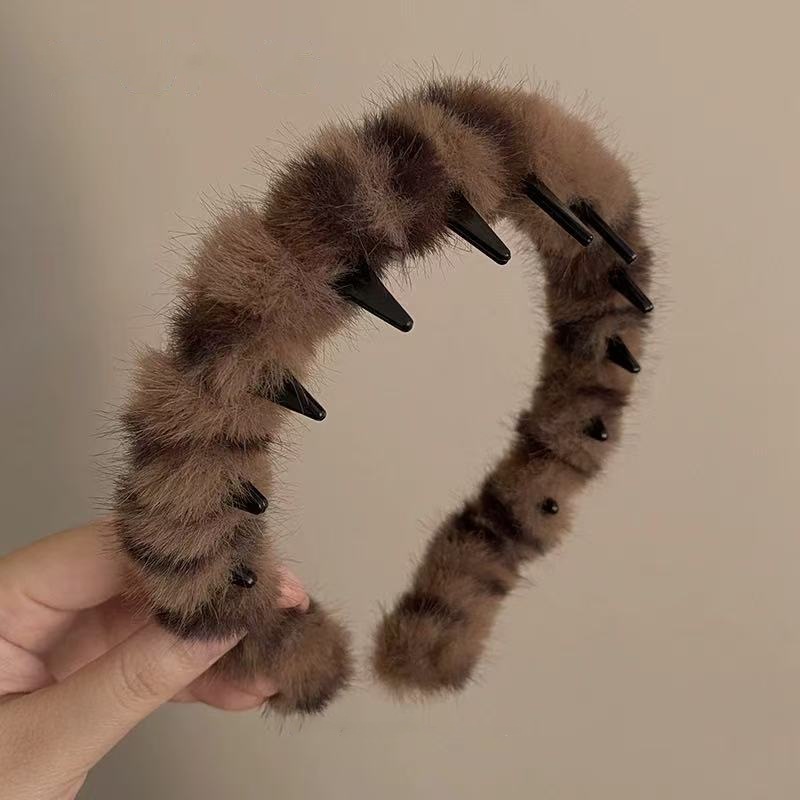 1568b dark leopard print fluffy hair band
