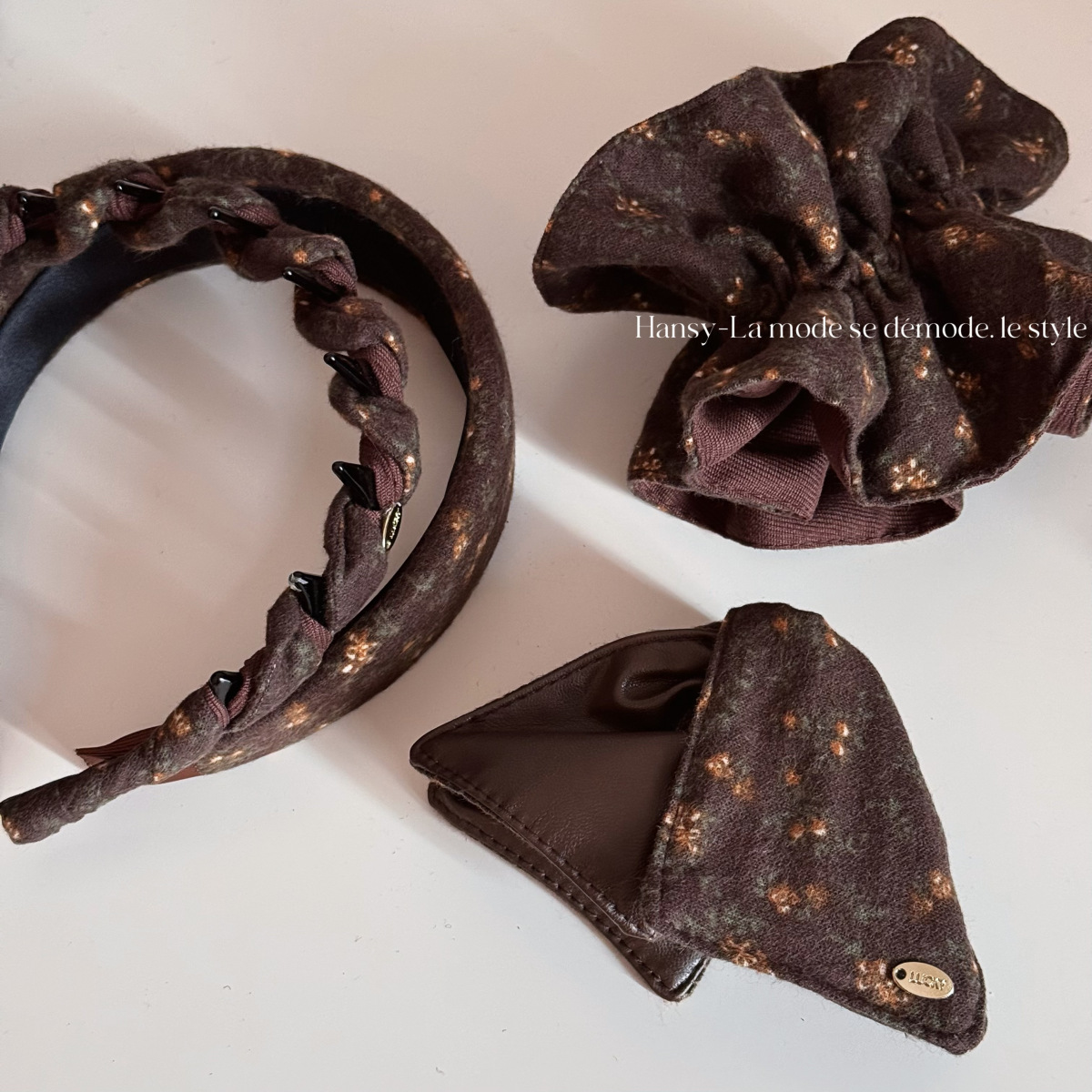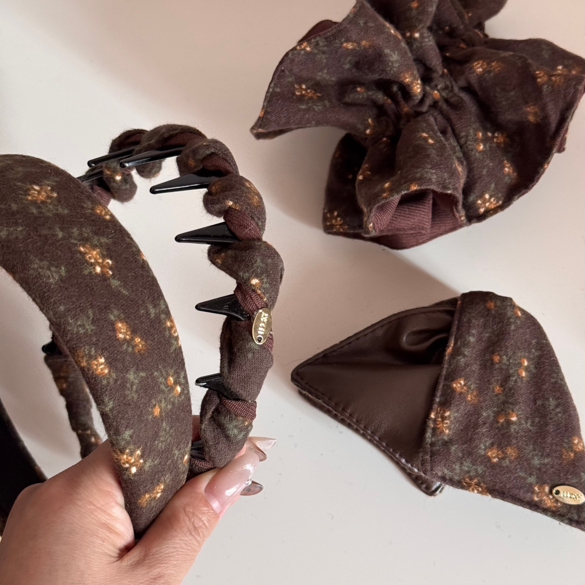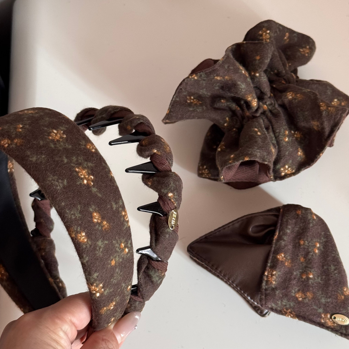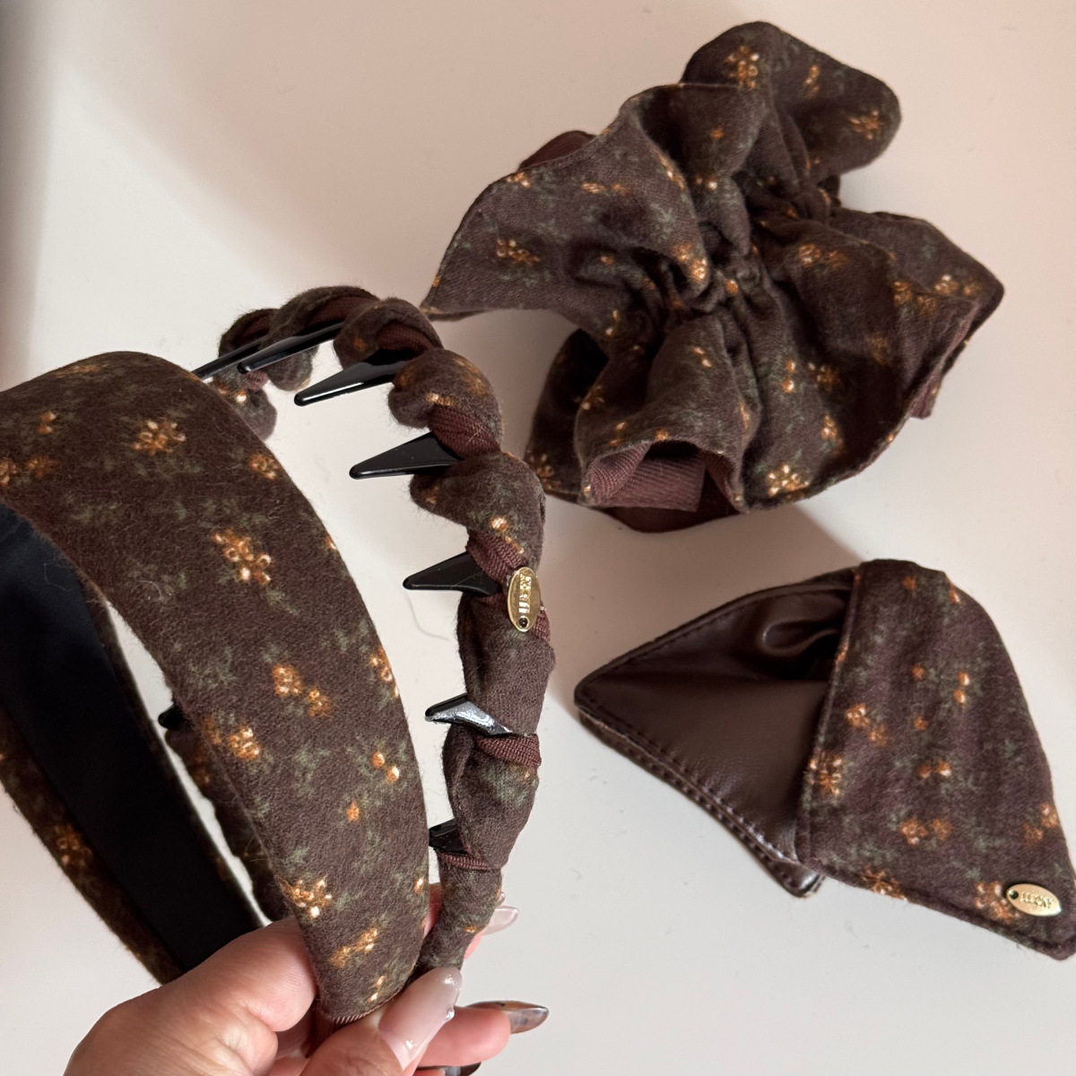 textured coffee floral – wide headband