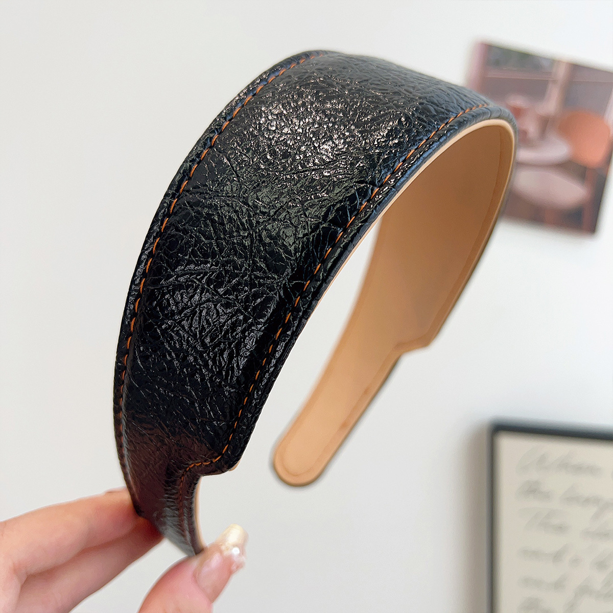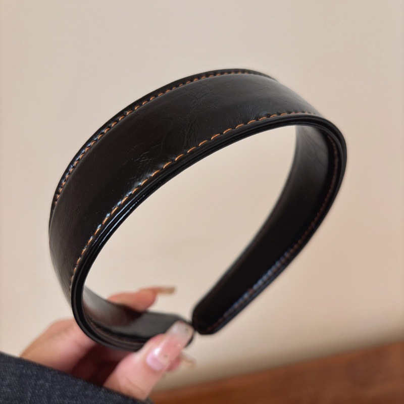 black leather headband, single piece
