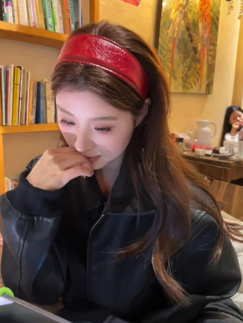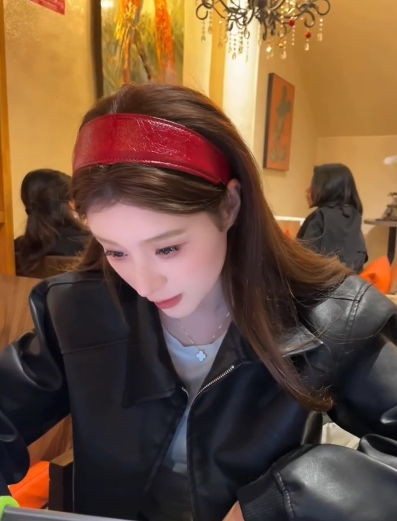 red hong kong-style leather headband
