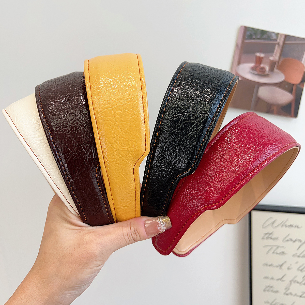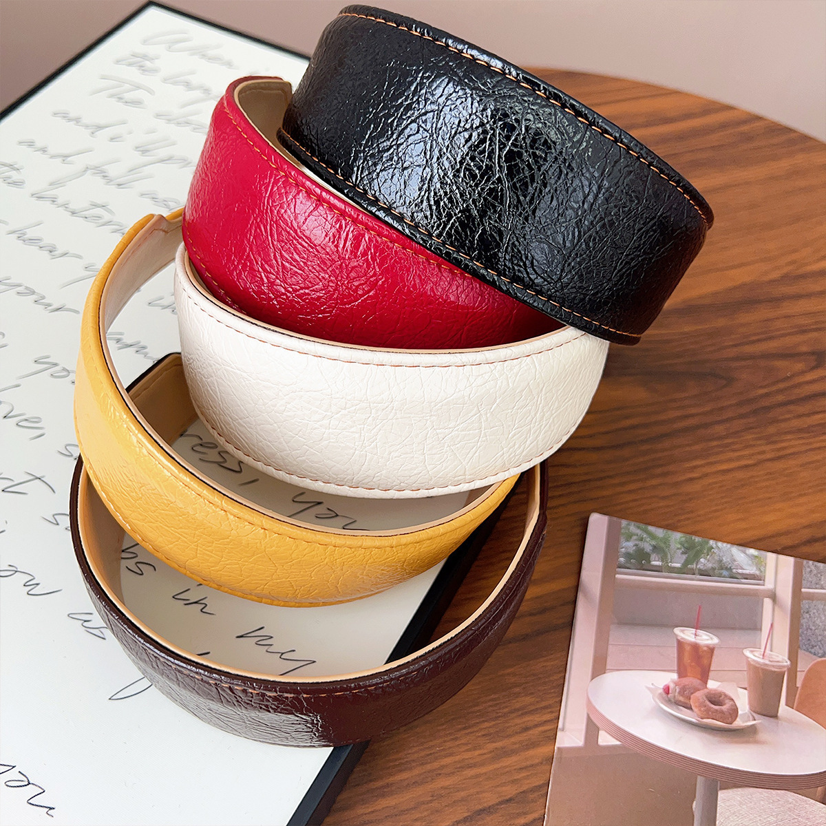 coffee-colored hong kong-style leather headband