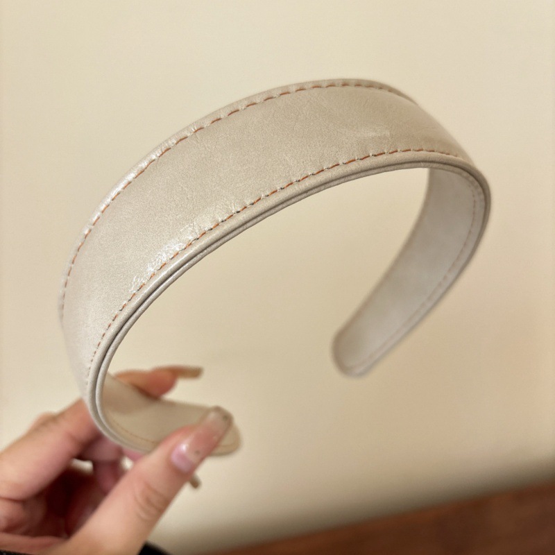 beige leather headband, single piece