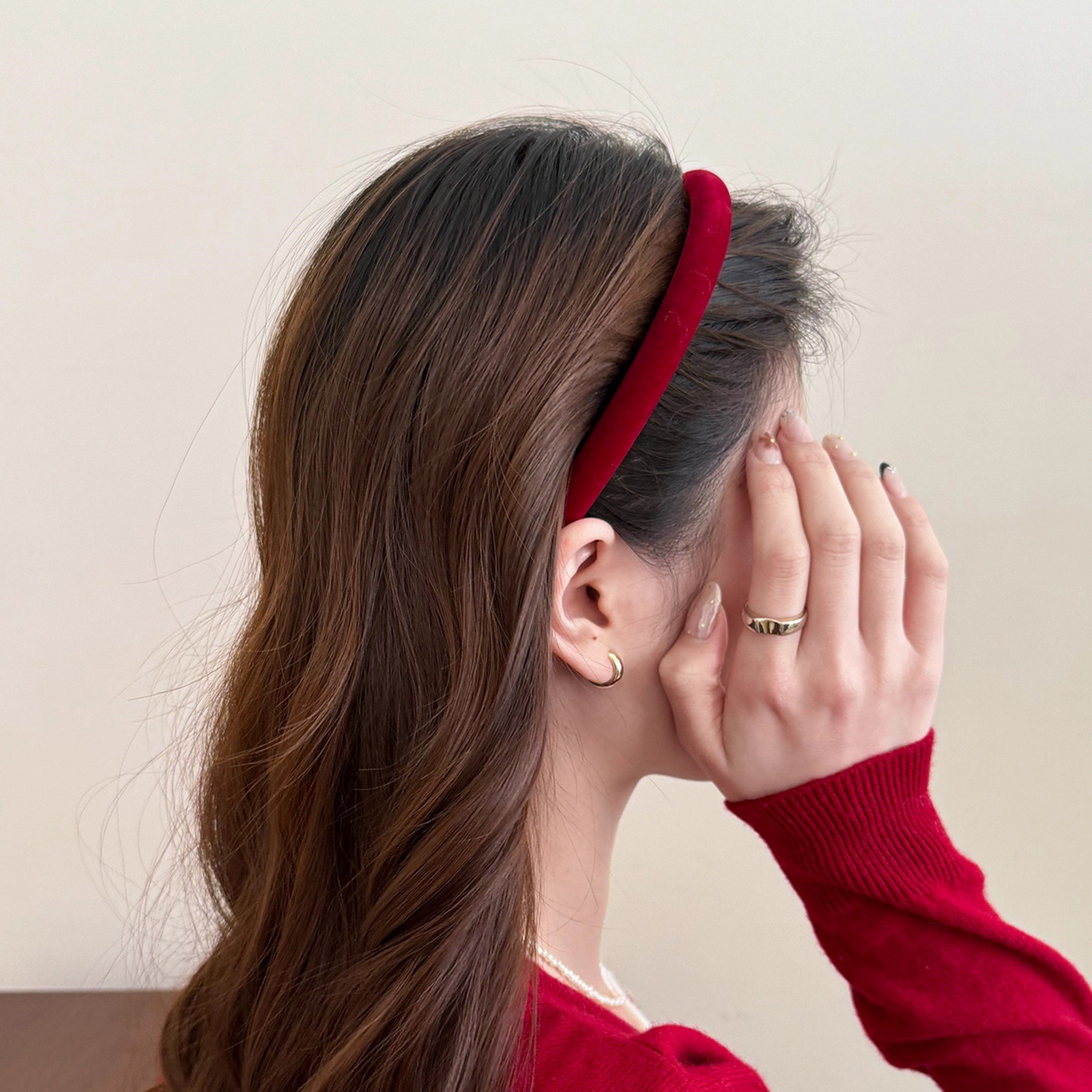 p78-3# burgundy velvet thin headband
