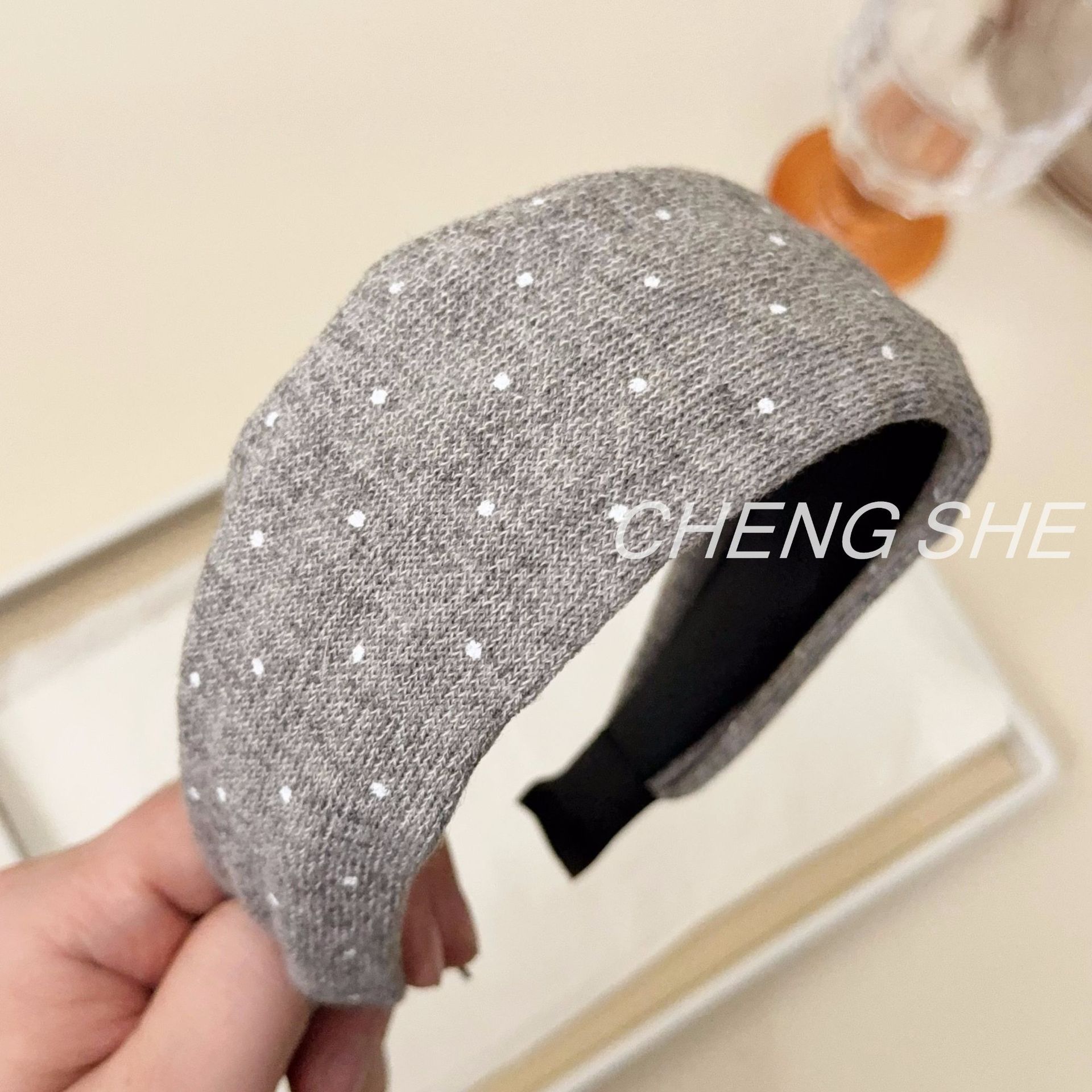 fg379 maillard five-color knitted polka dot headband [gray]