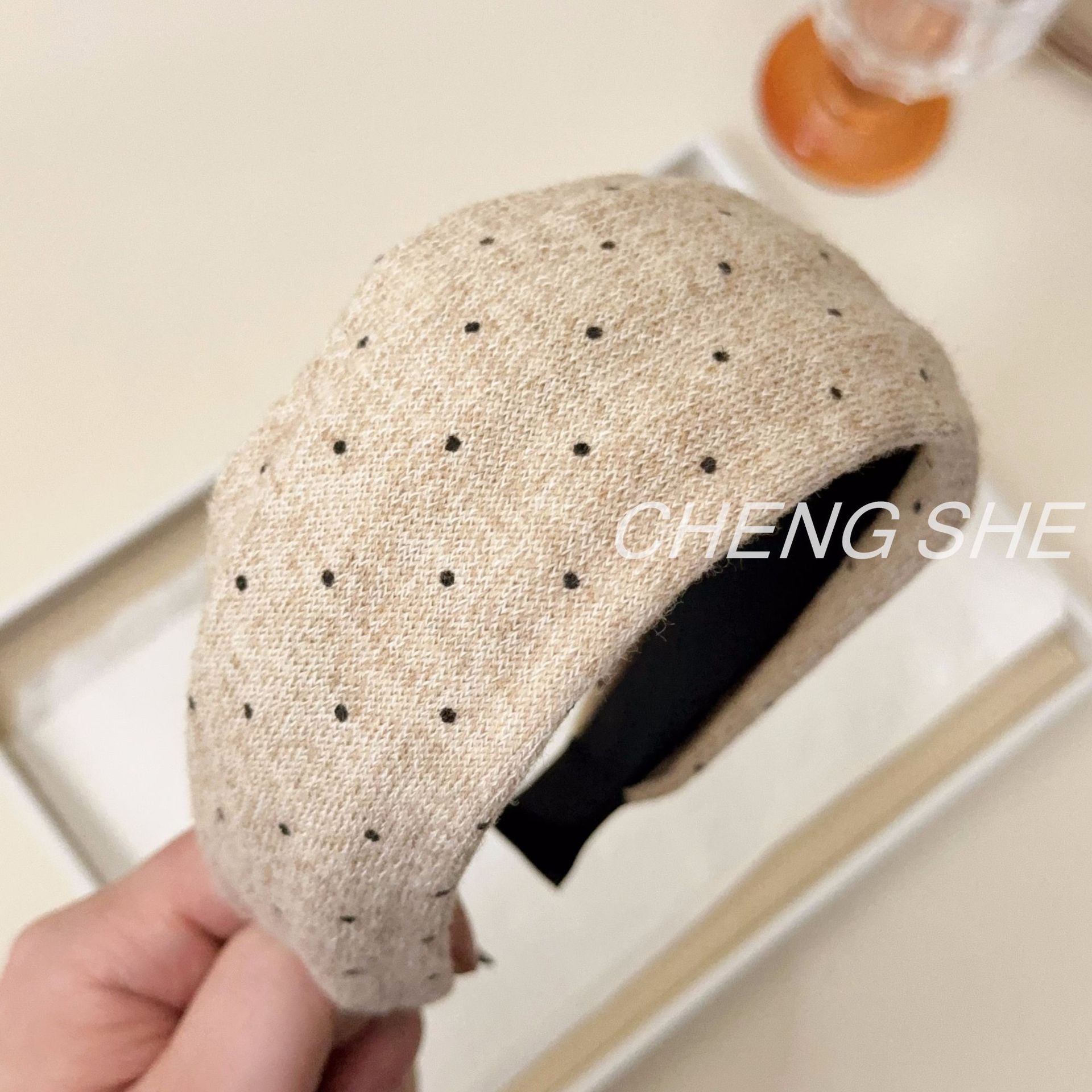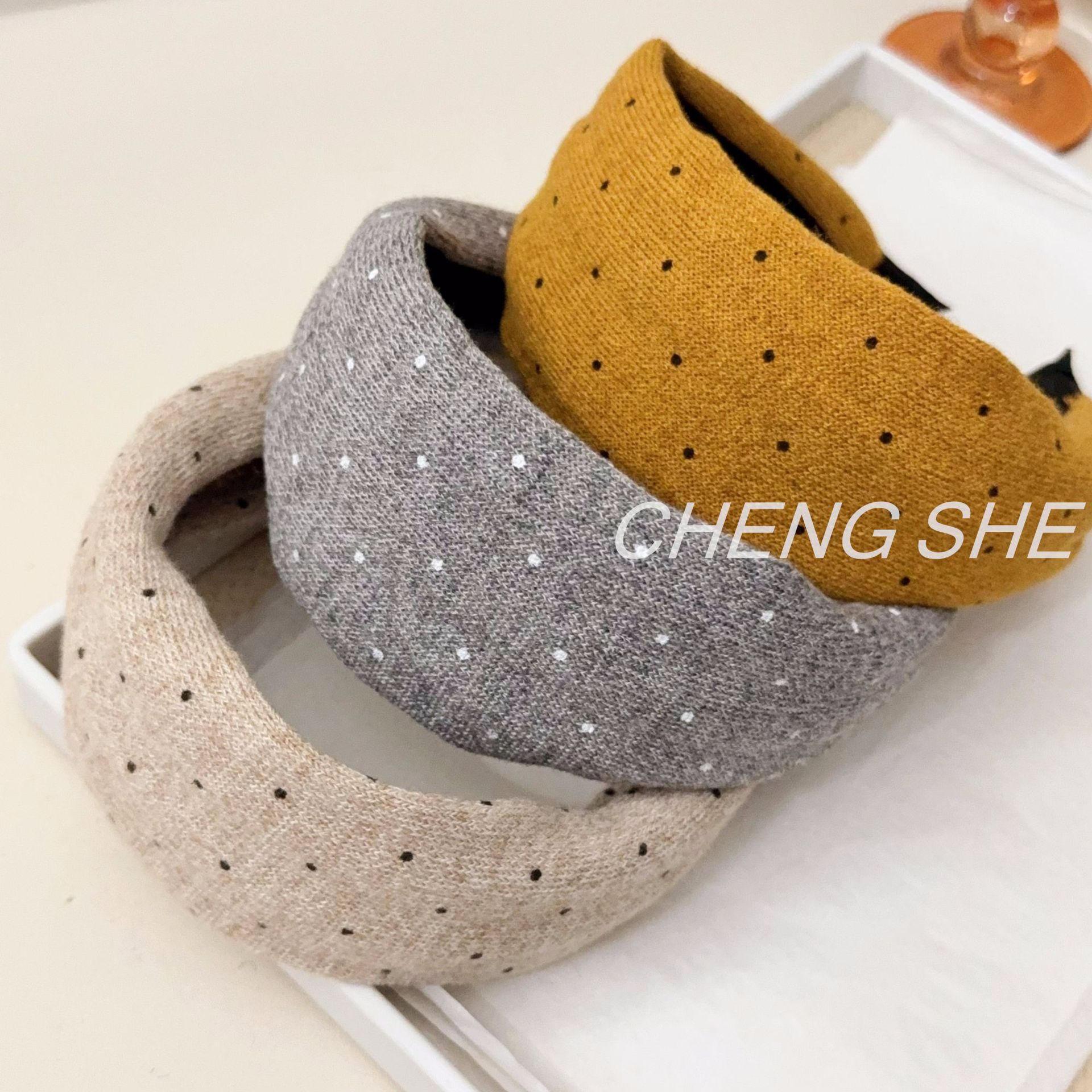 fg379 maillard five-color knitted polka dot headband [beige]