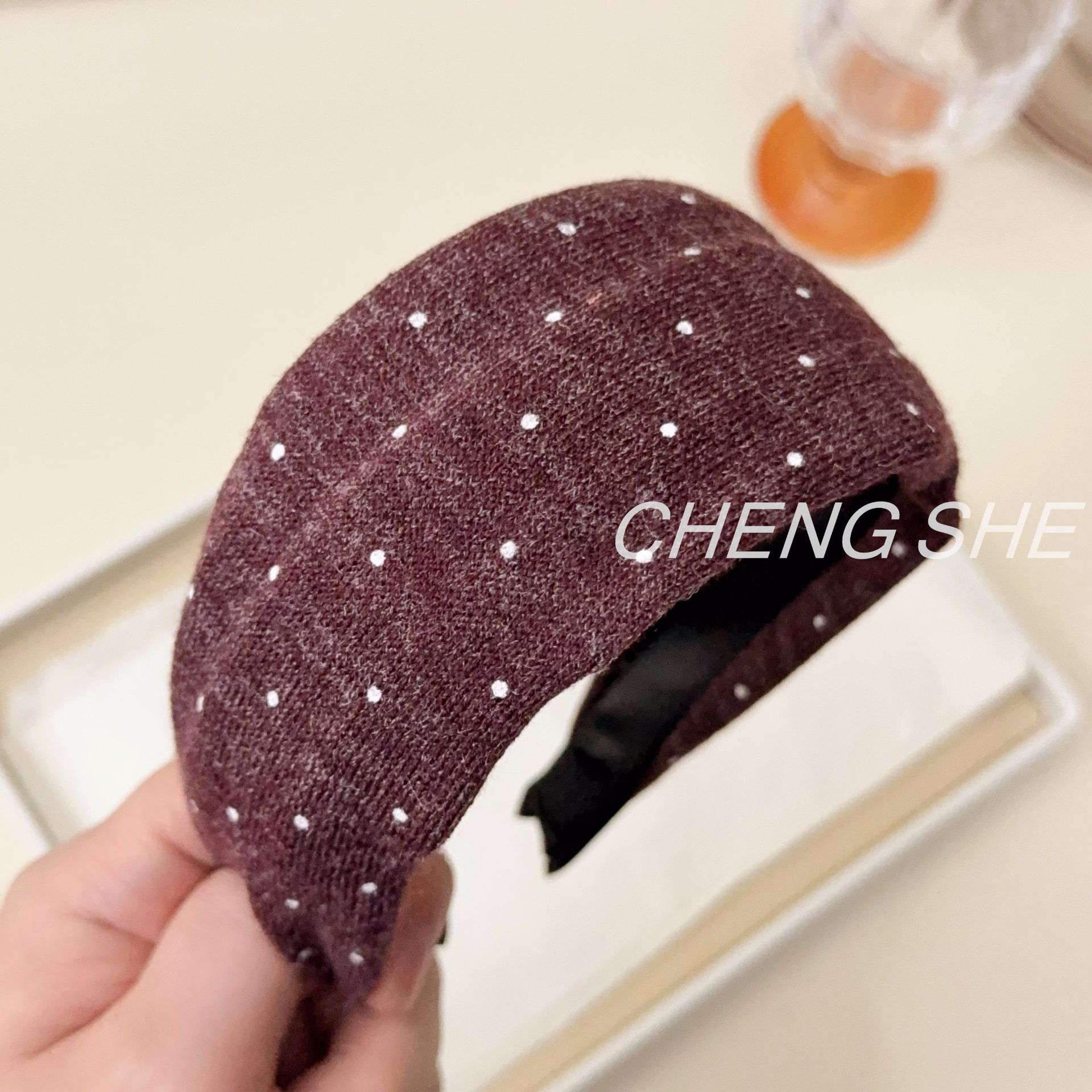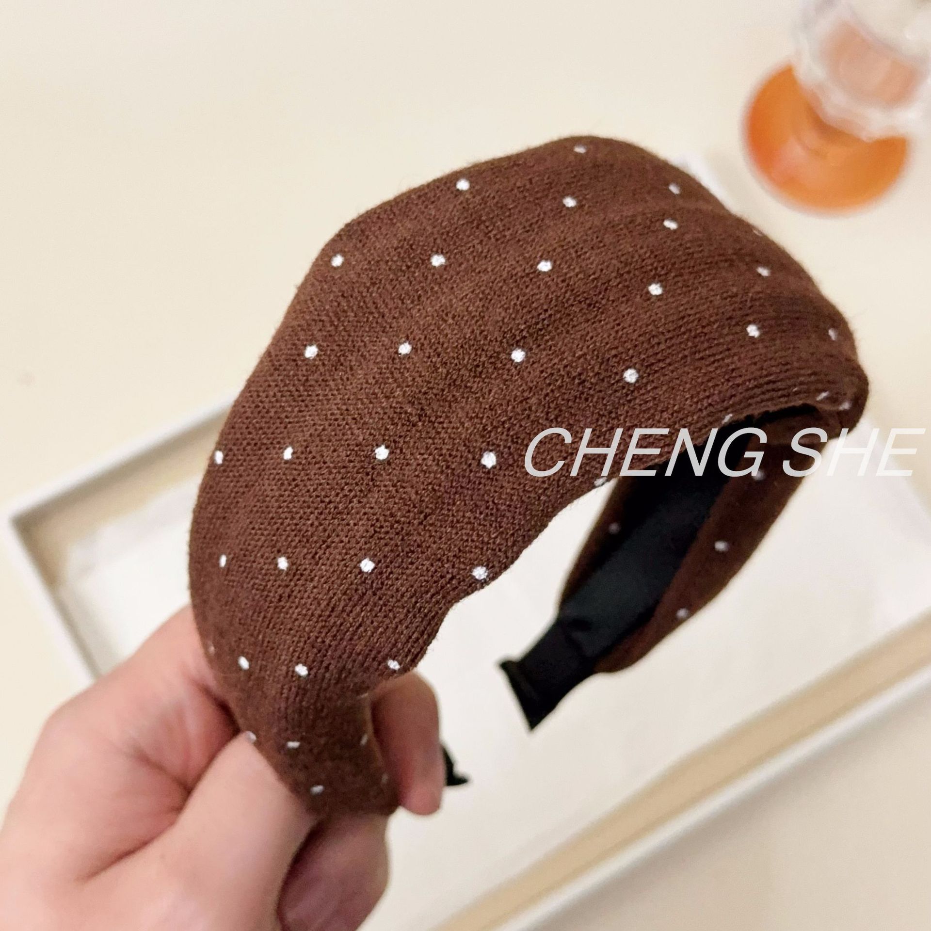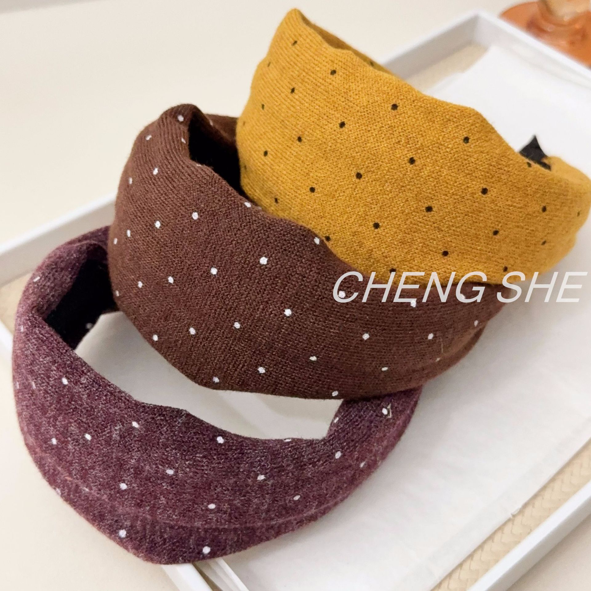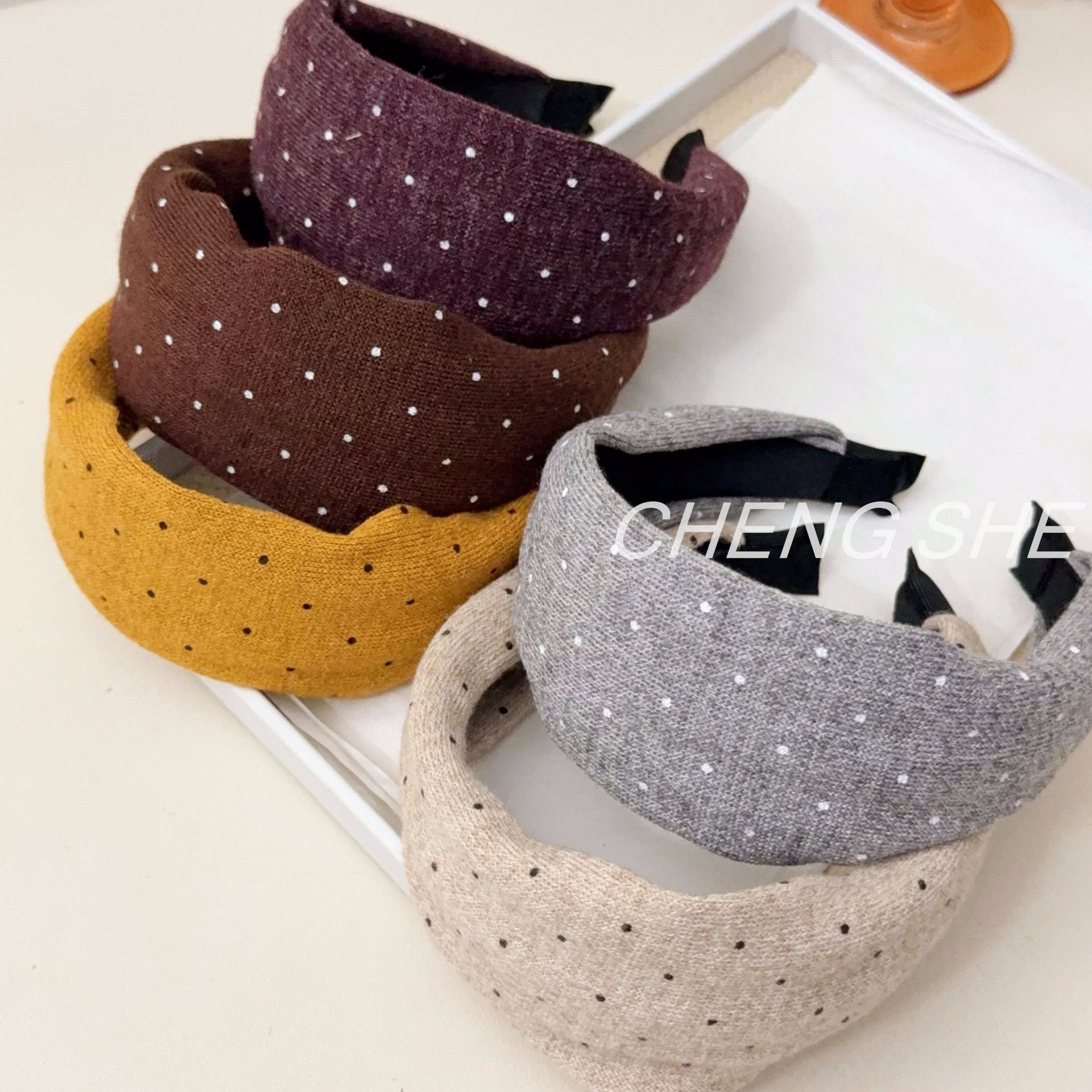 fg379 maillard five-color knitted polka dot headband [coffee-color]