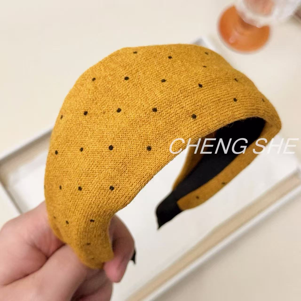 fg379 maillard five-color knitted polka dot headband [yellow]