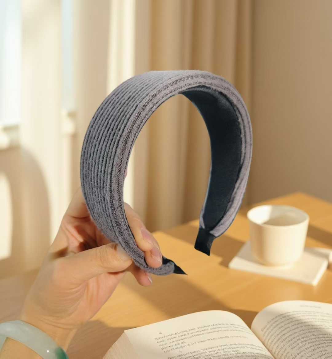 solid-color striped gray headband