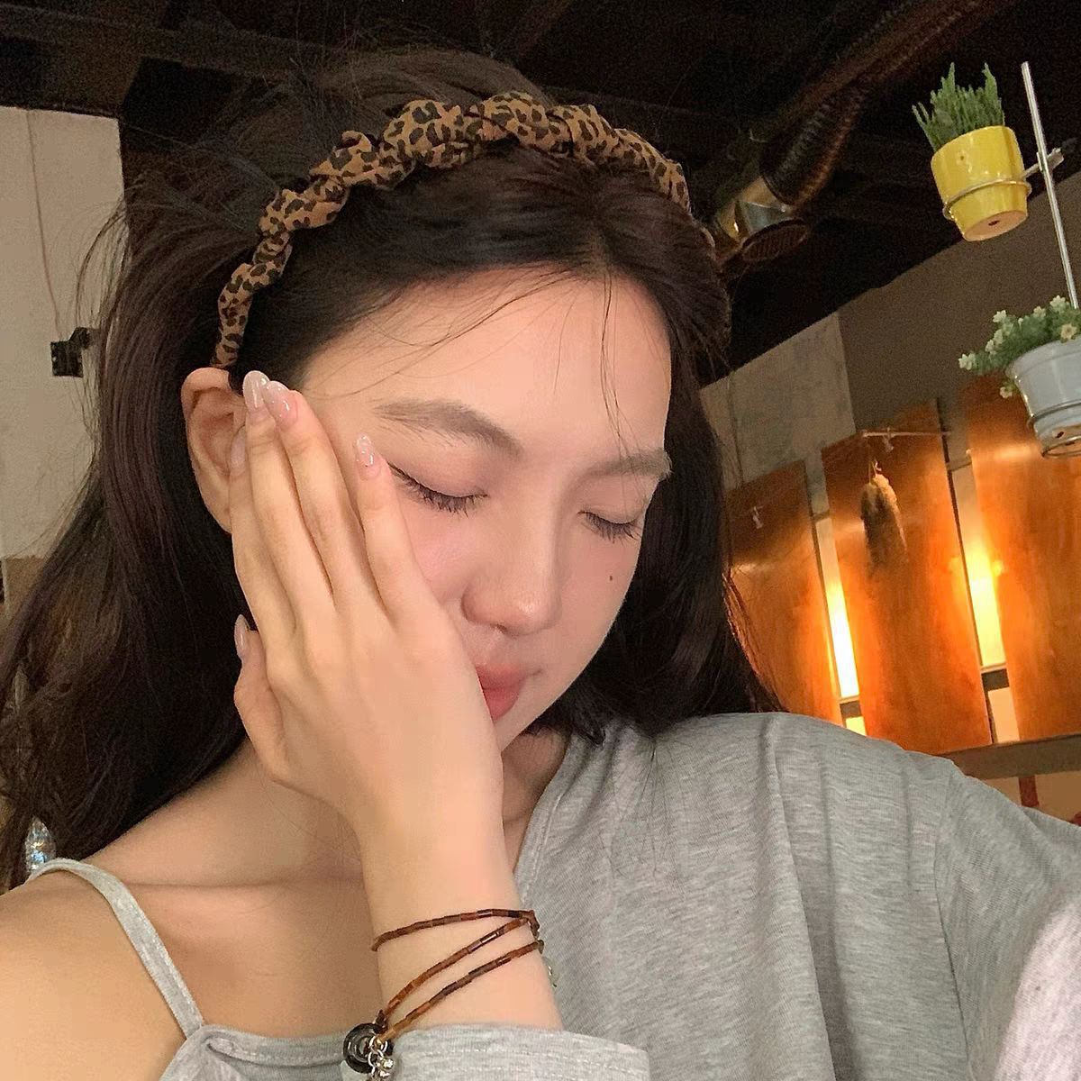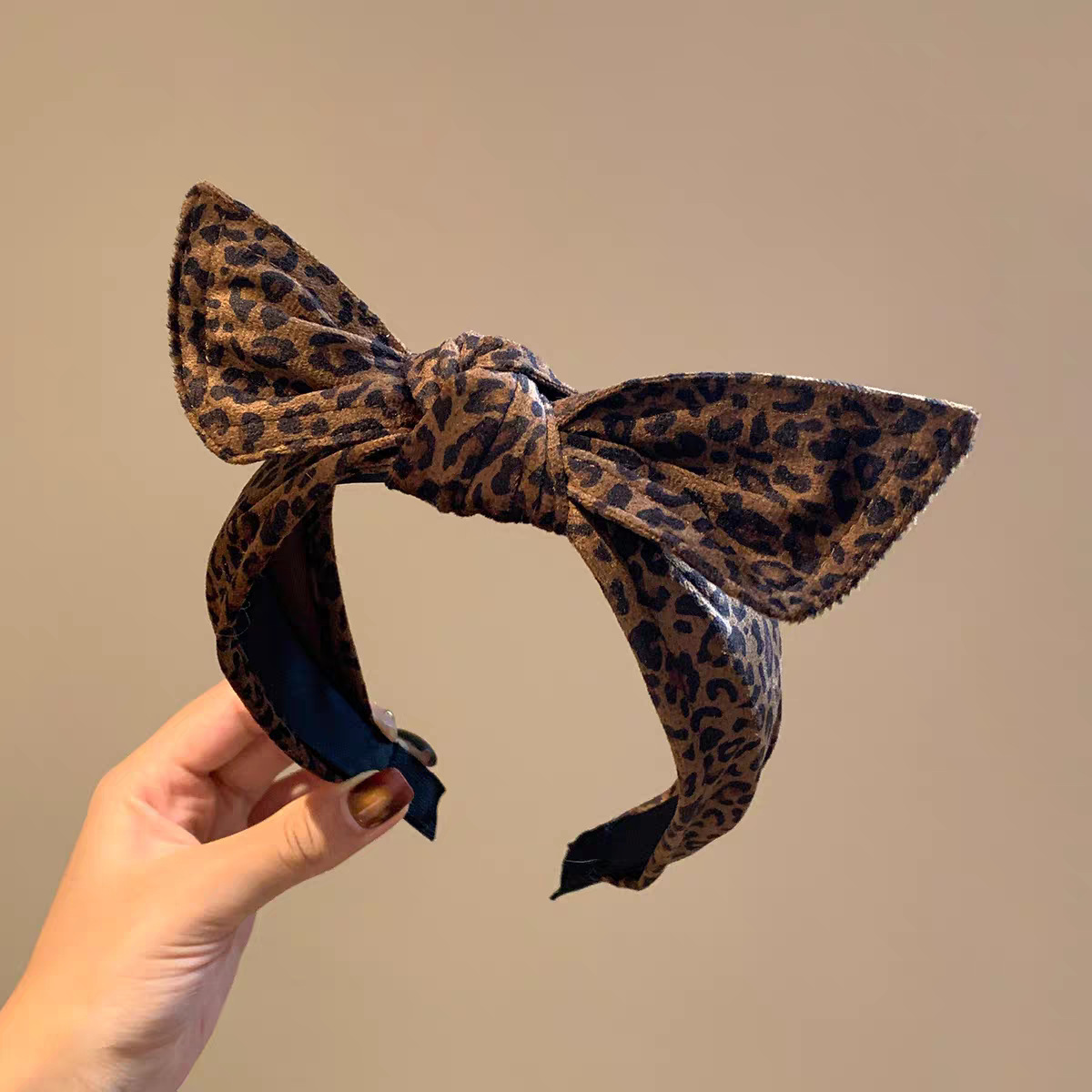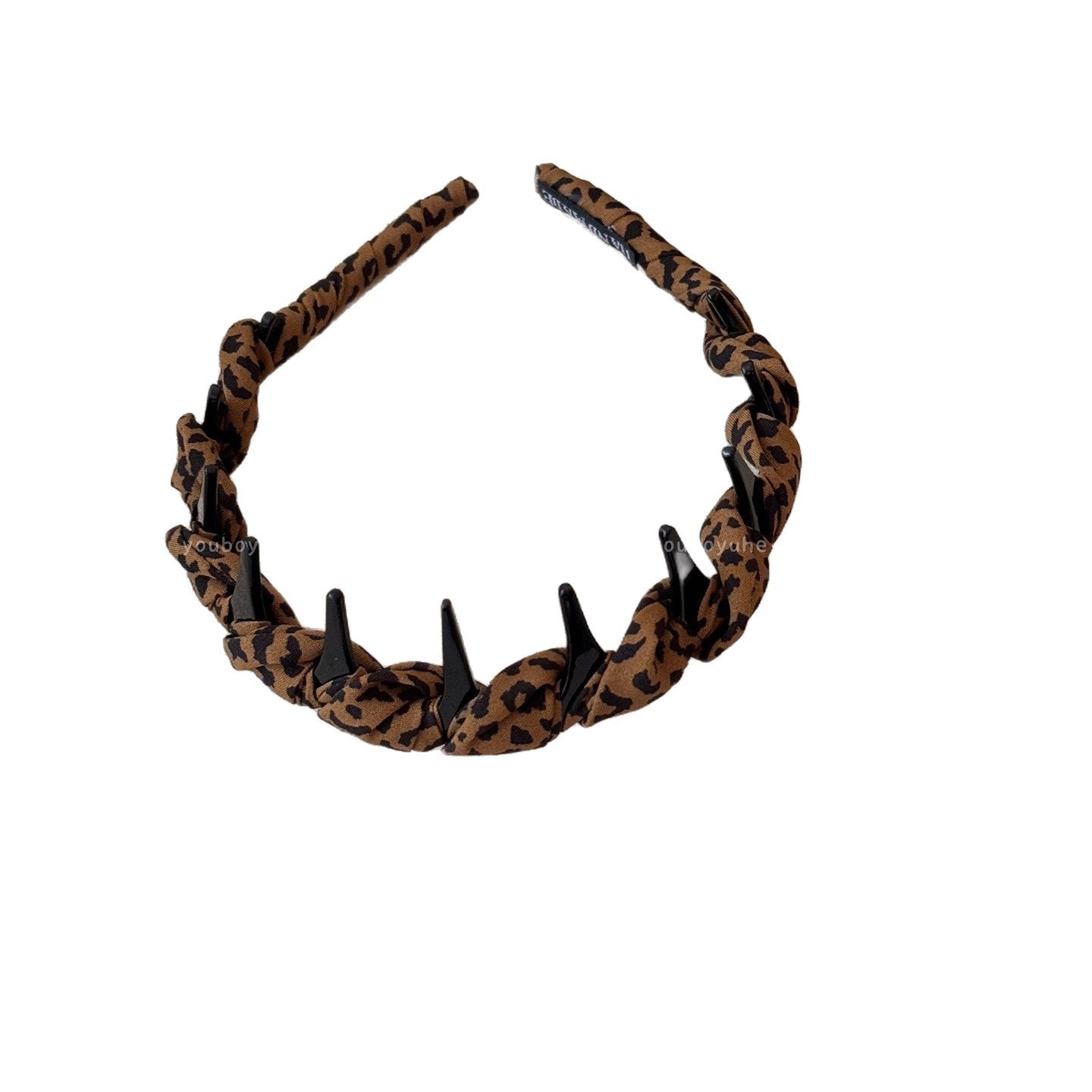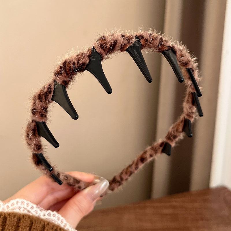 brown leopard pattern velvet hairband with teeth