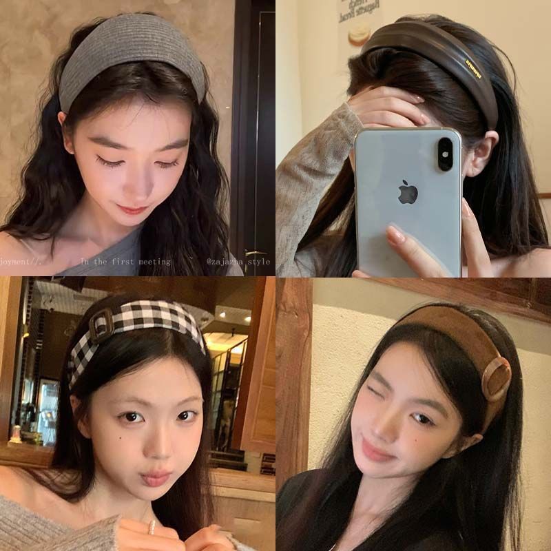 large plaid square buckle wide brim hair band
