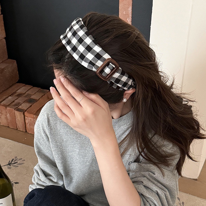 small plaid square buckle wide brim hair band