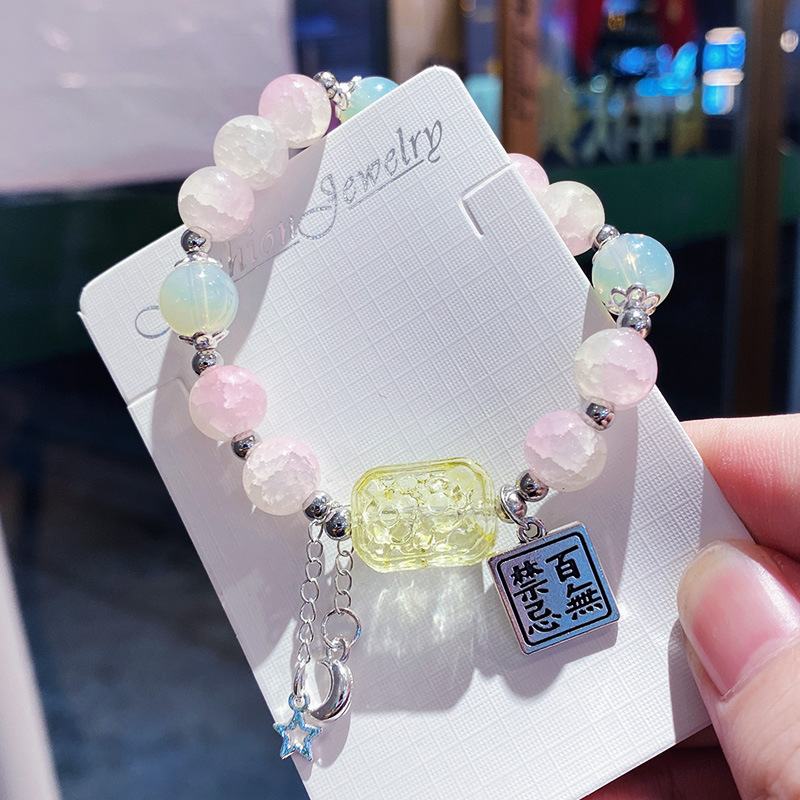 yellow and pink sugar-free cubic sugar bracelet (boxed with cardboard)