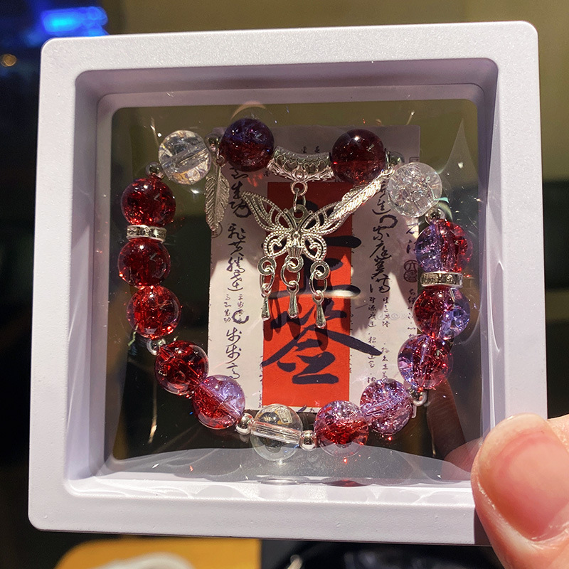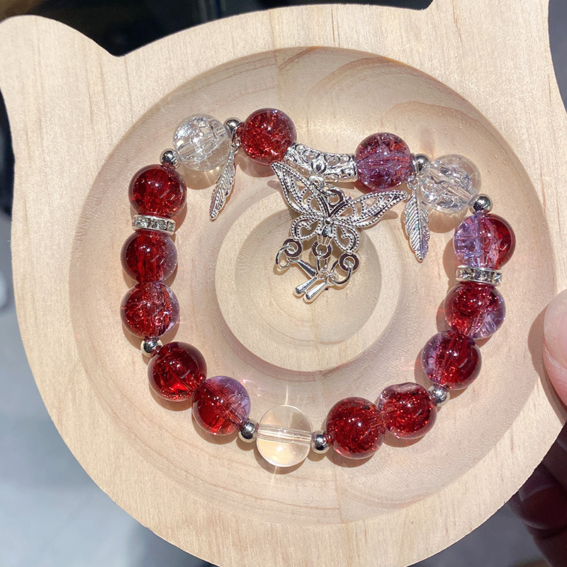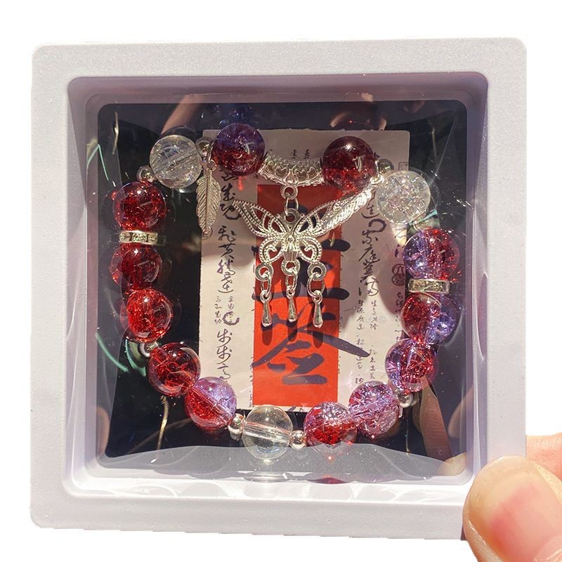 bright red butterfly tassel ice crack bracelet (boxed with cardboard)
