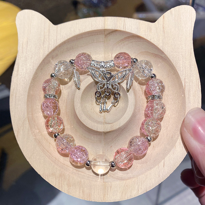 pink-yellow butterfly tassel ice-crack bracelet (bagged)