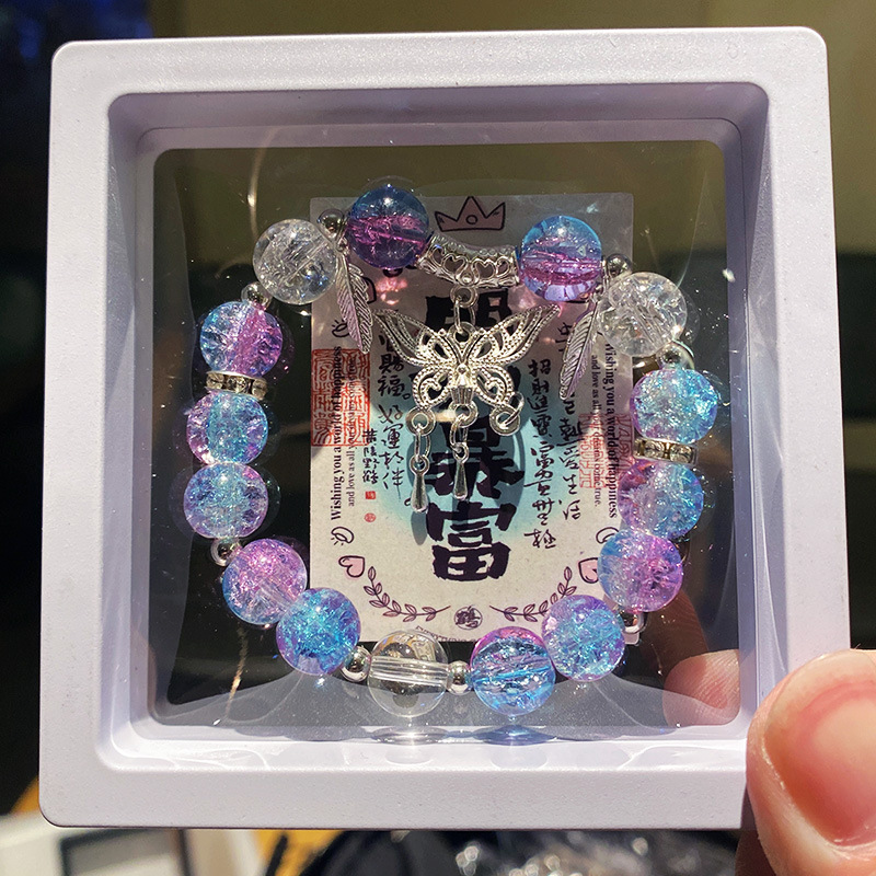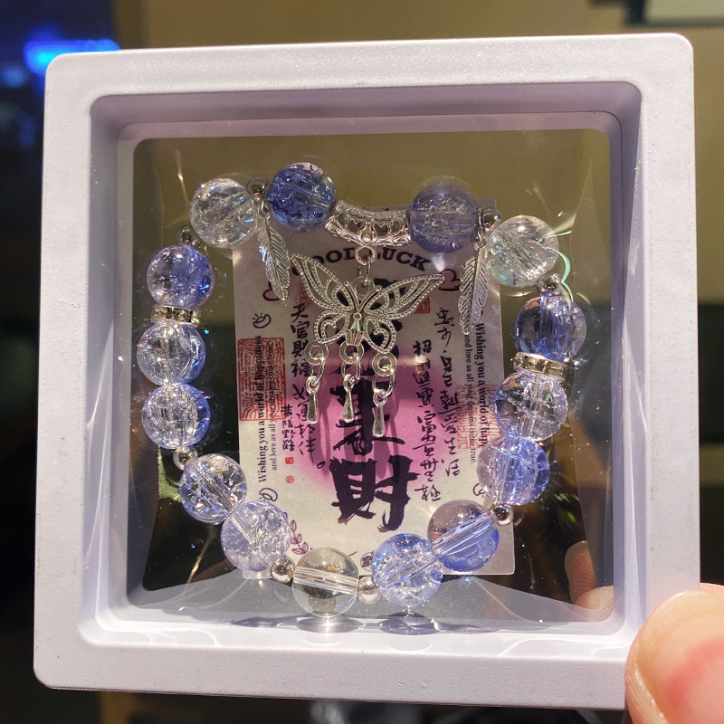 blue-purple butterfly tassel ice crack bracelet (boxed with cardboard)