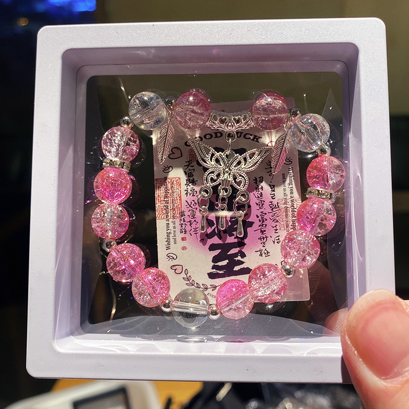 pink-yellow butterfly tassel ice-crack bracelet (boxed with cardboard)