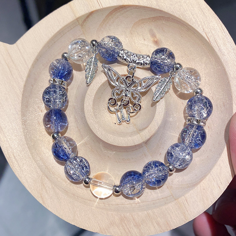 sky blue butterfly tassel ice crack bracelet (packaged in a bag)