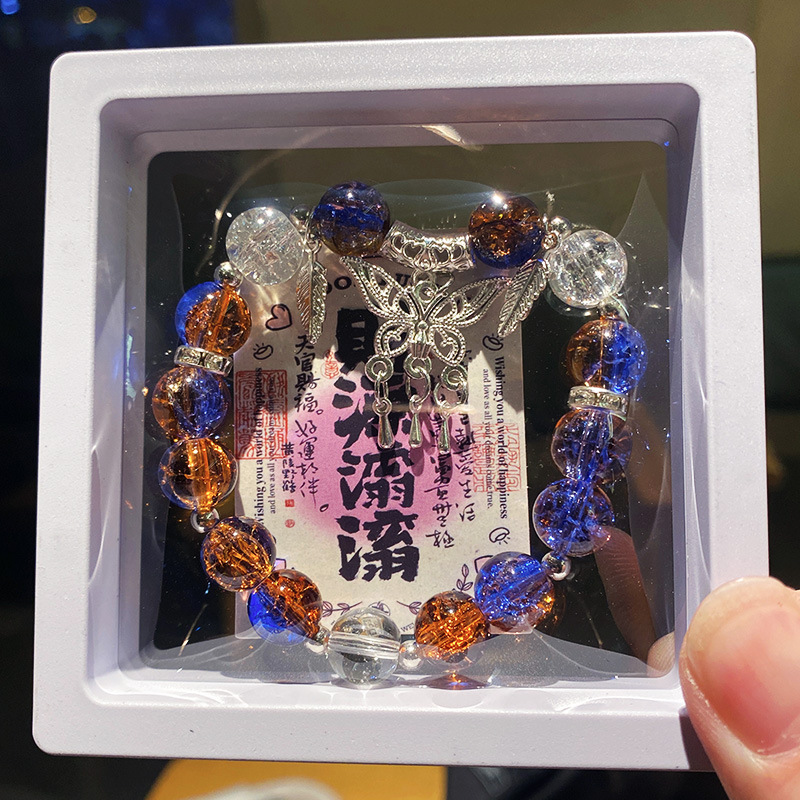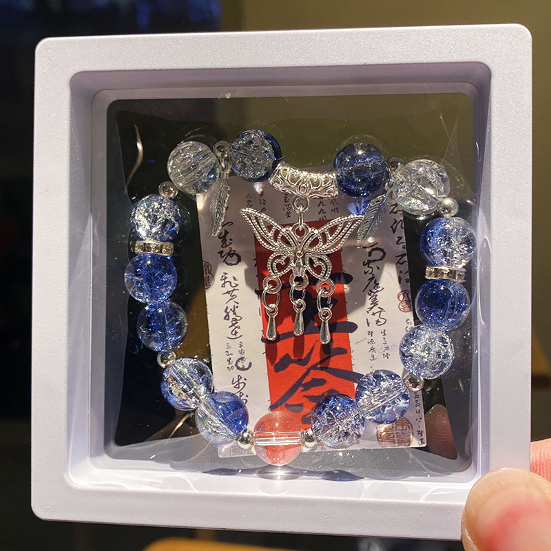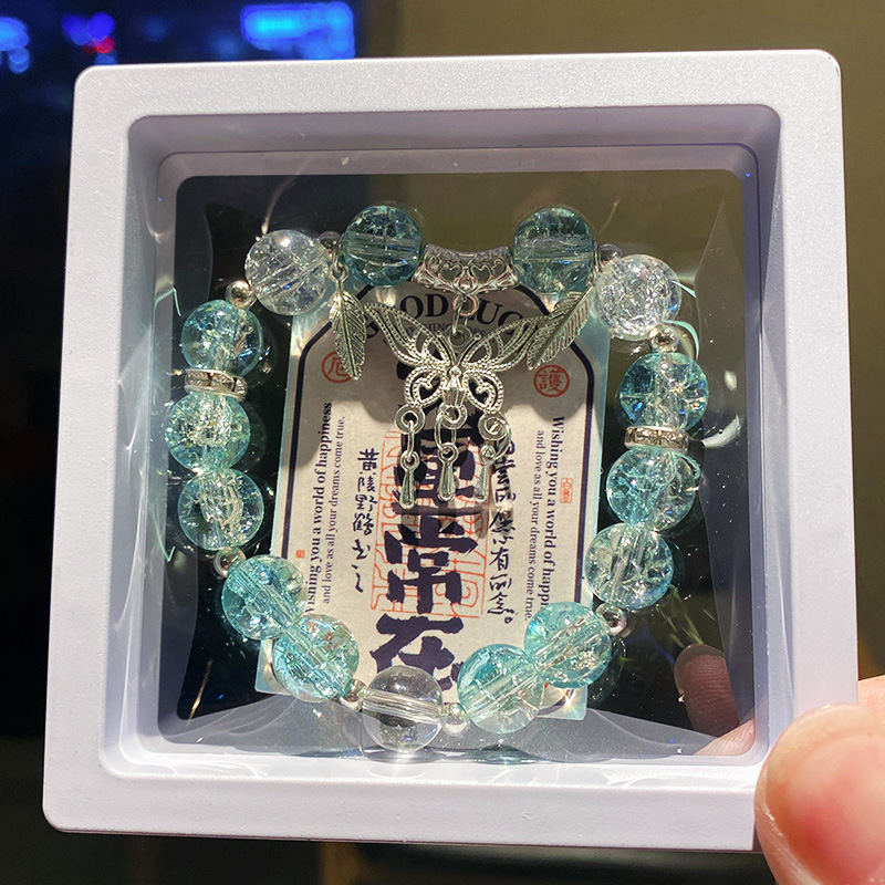blue butterfly tassel ice crack bracelet (boxed with cardboard)