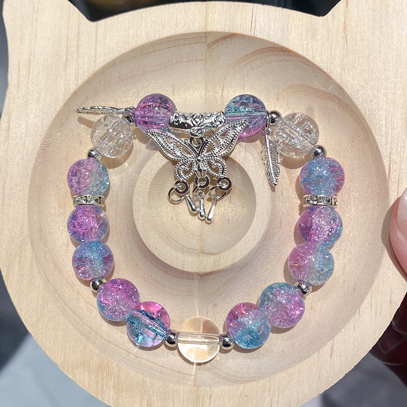 blue-purple butterfly tassel ice crack bracelet (bagged)