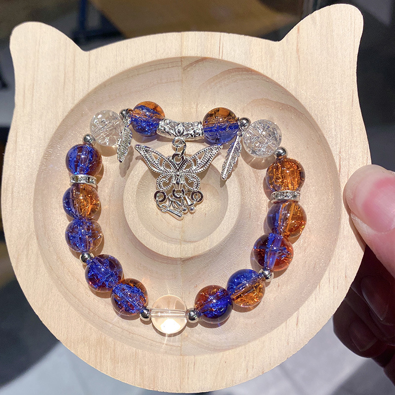 yellow and blue butterfly tassel ice crack bracelet (boxed with cardboard)