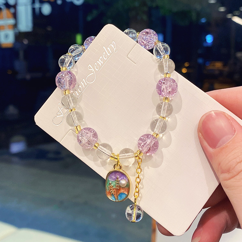 purple oil painting jade chip bracelet (boxed + random card)