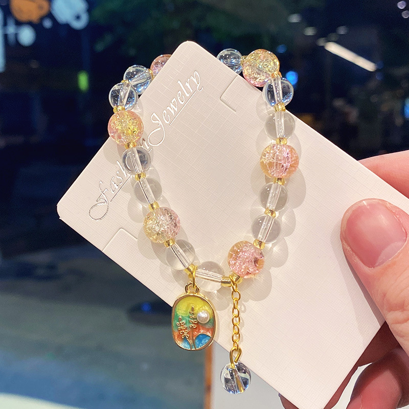 pink oil-painted jade chip bracelet (boxed + random card)