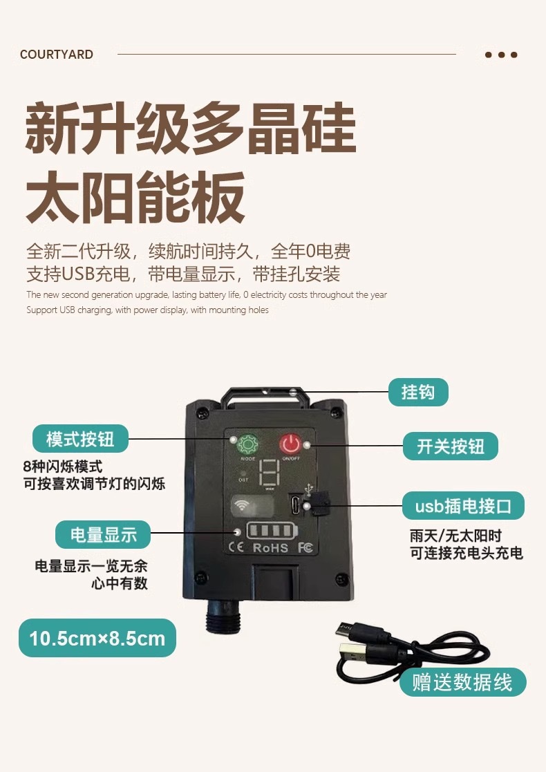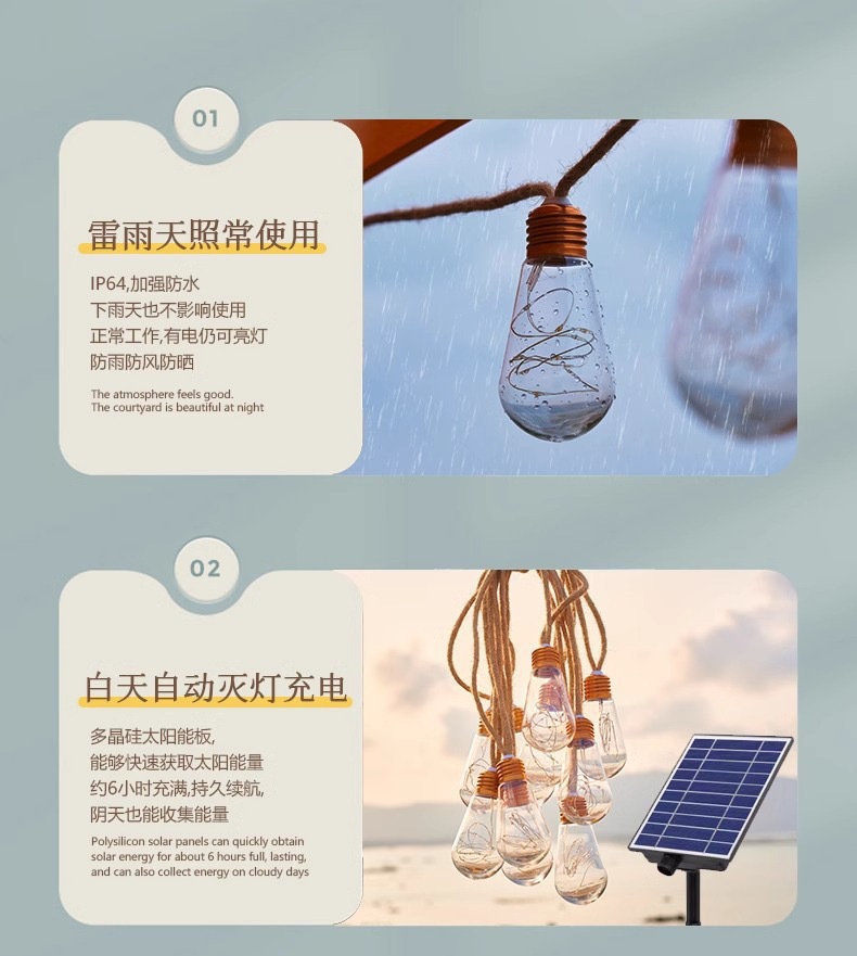 8-meter, 16-lamp [warm light] solar-powered model [large panel]