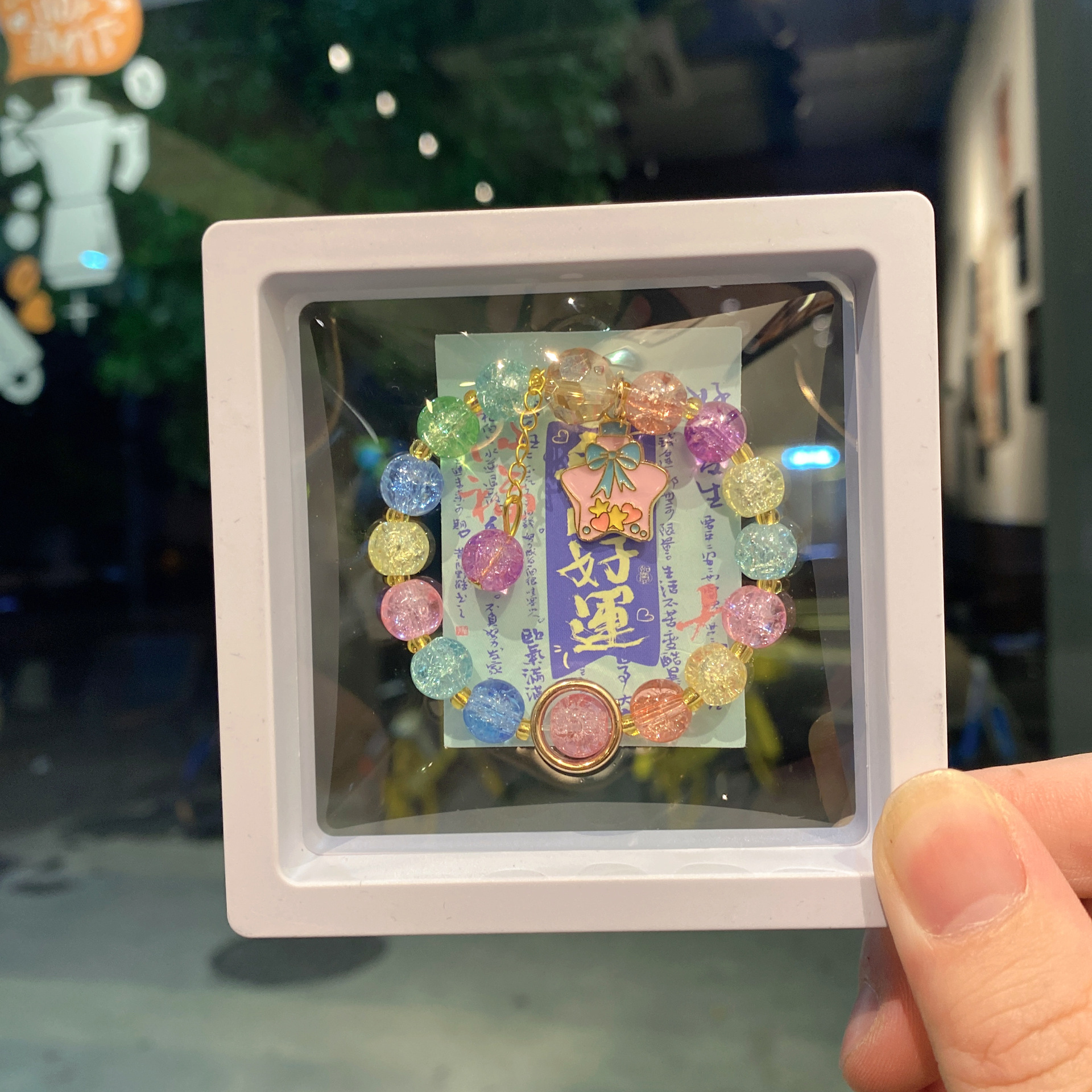 blue wishing bottle children's style floral bracelet (boxed with cardboard)