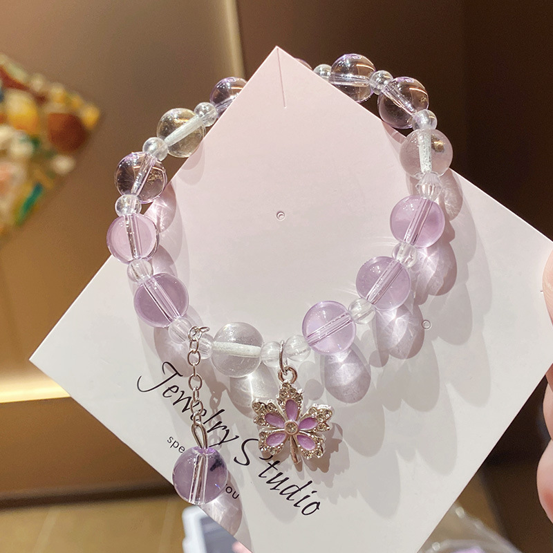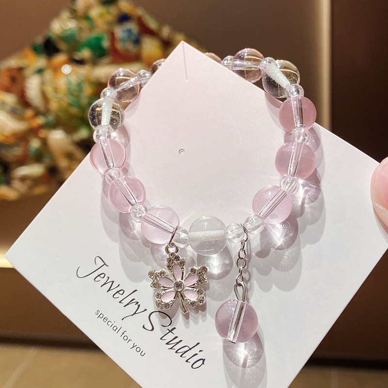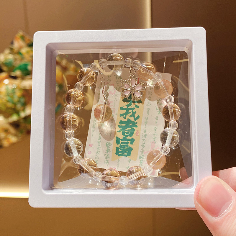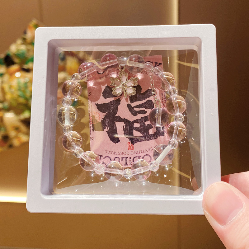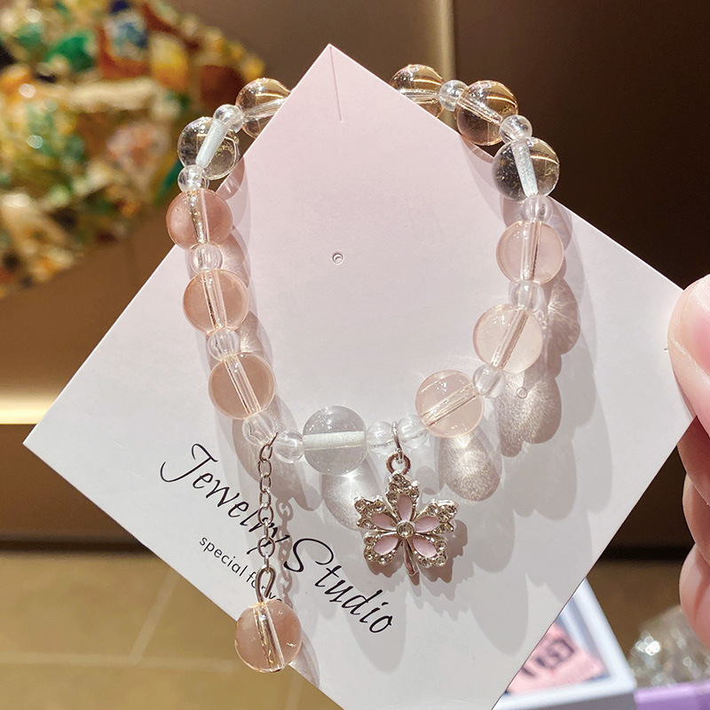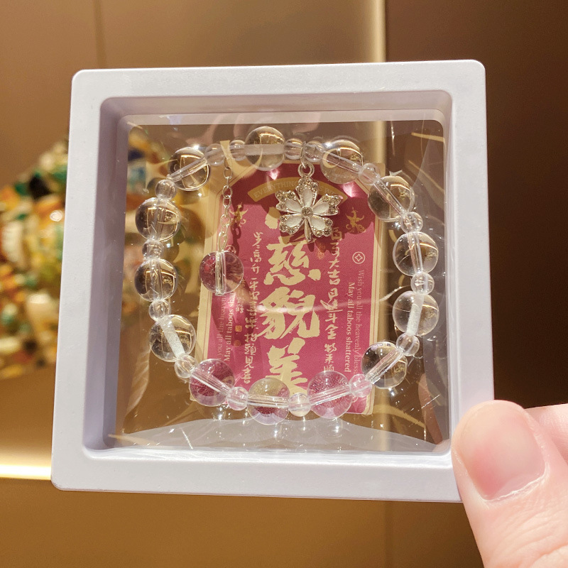 pink maple leaf imitation crystal 10mm bracelet (boxed with cardboard)
