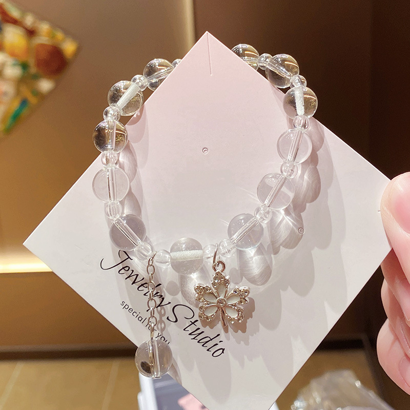 clear white maple leaf imitation crystal 10mm bracelet (packaged in a bag)