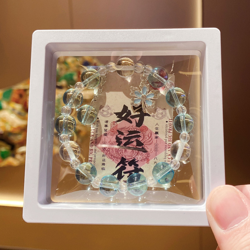 blue maple leaf imitation crystal 10mm bracelet (boxed with card)