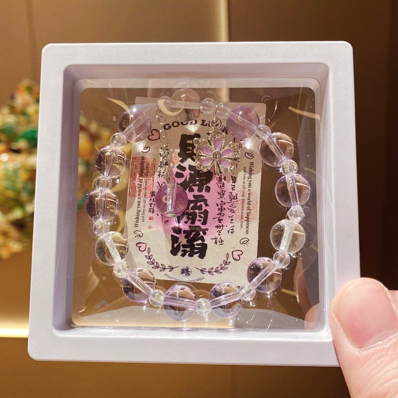 purple maple leaf imitation crystal 10mm bracelet (boxed with cardboard)