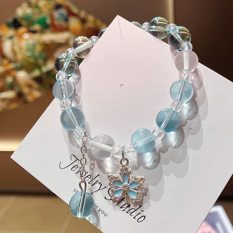blue maple leaf imitation crystal 10mm bracelet (bagged)
