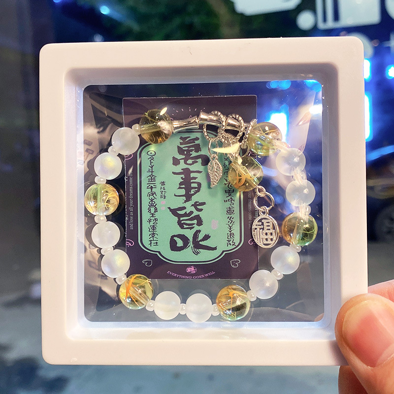 orange-green quicksand character blessing bracelet (boxed with cardboard insert)