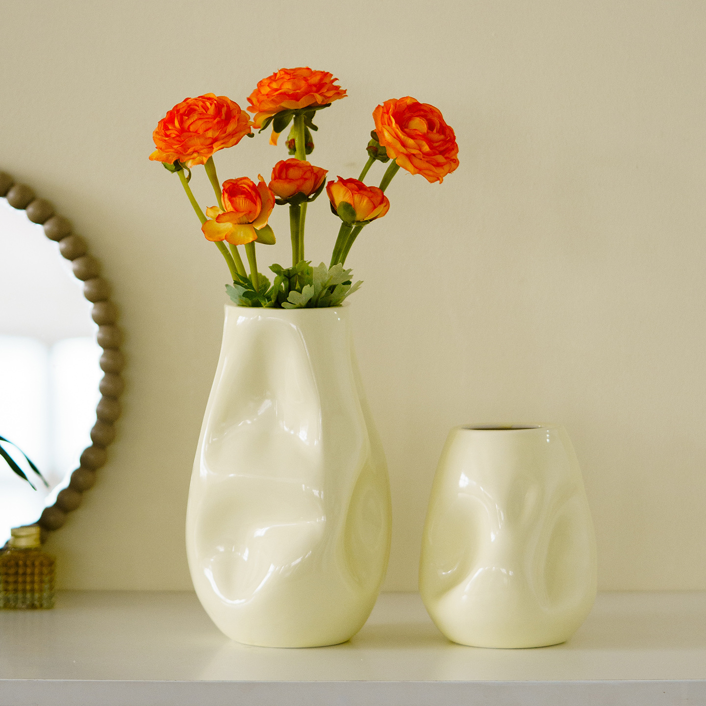 yuki. large size (cream yellow) +3 printed little lotus buds (orange)