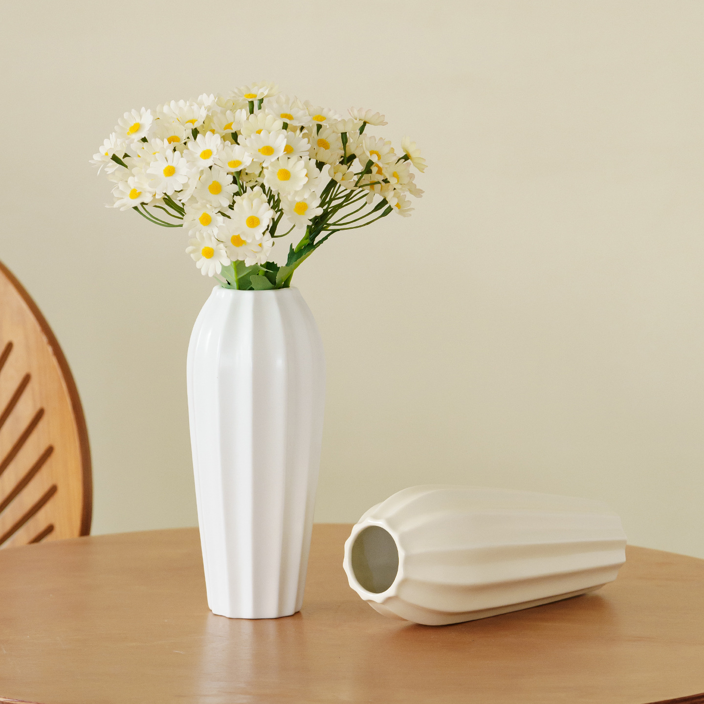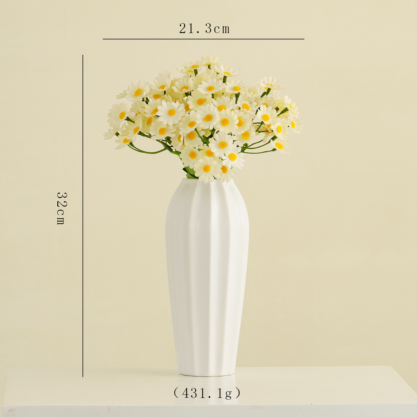 organic pure. medium (cream white) +4 champagne-colored chamomiles