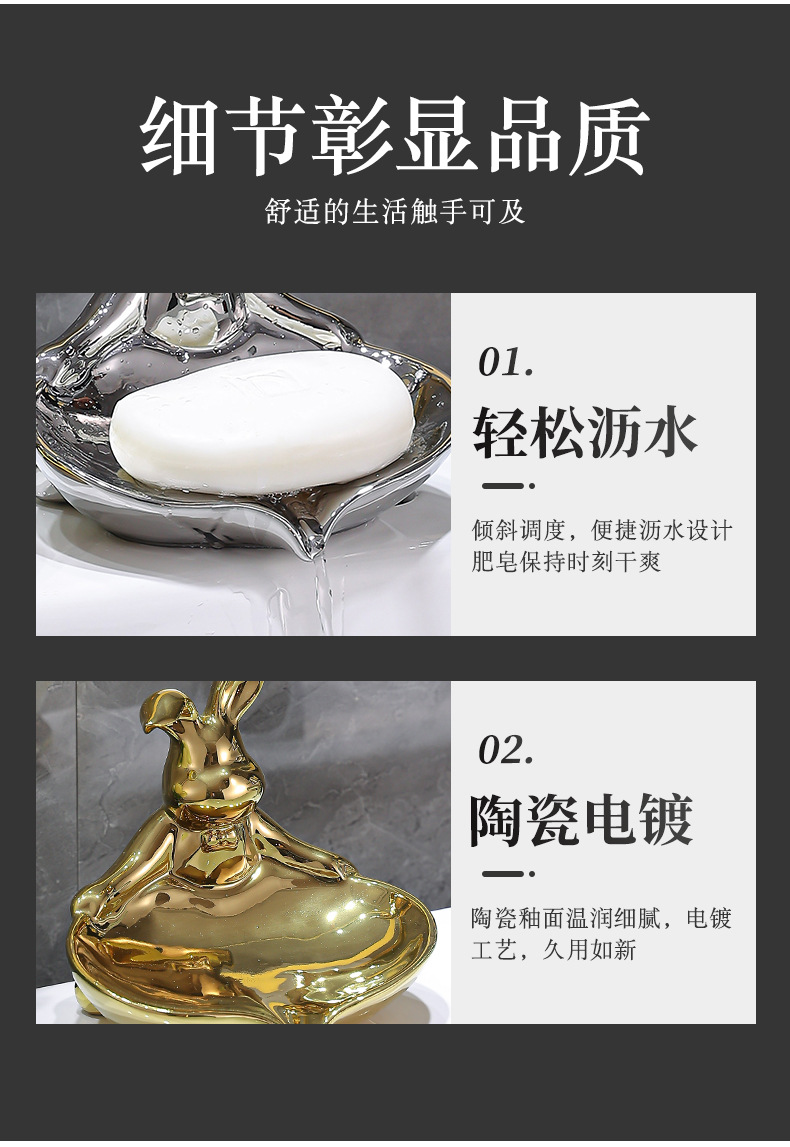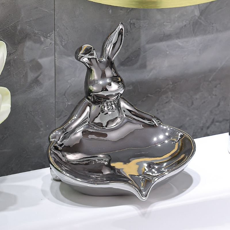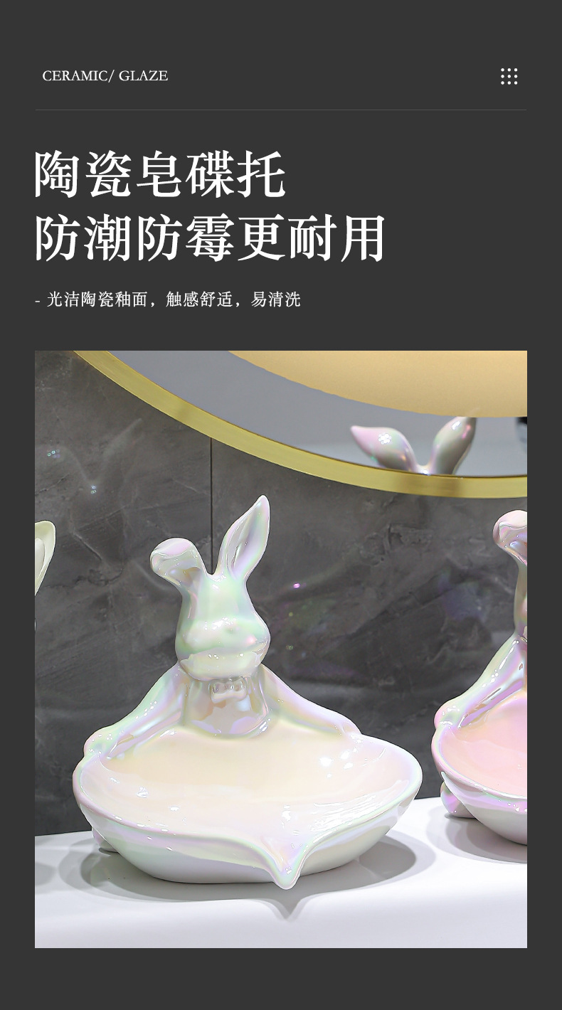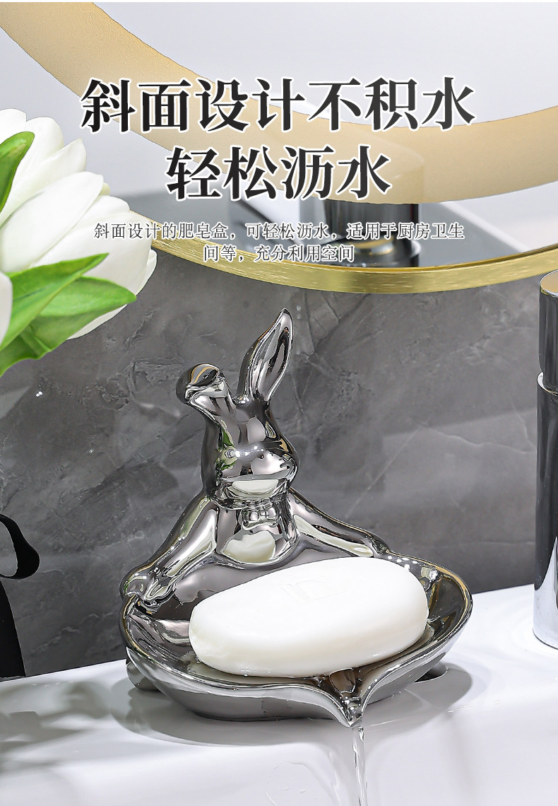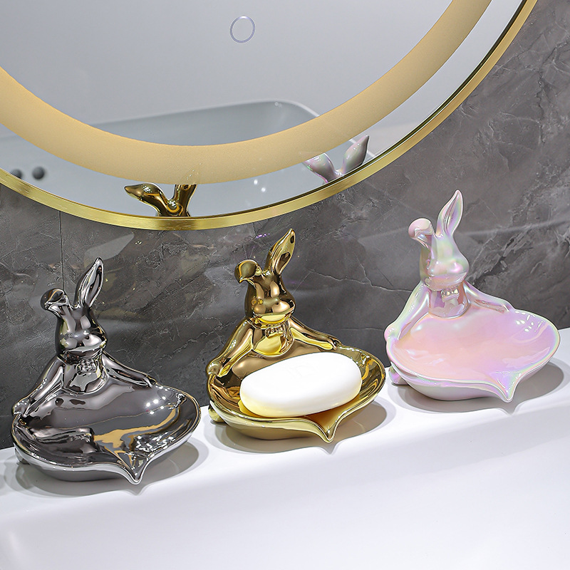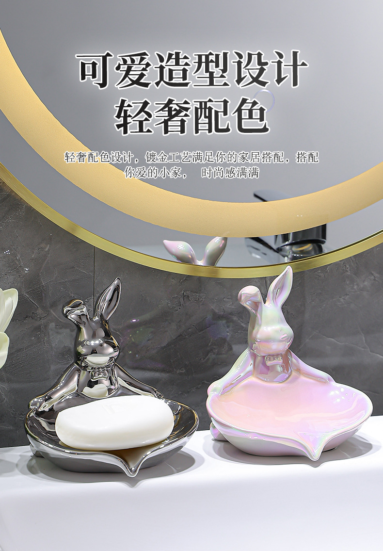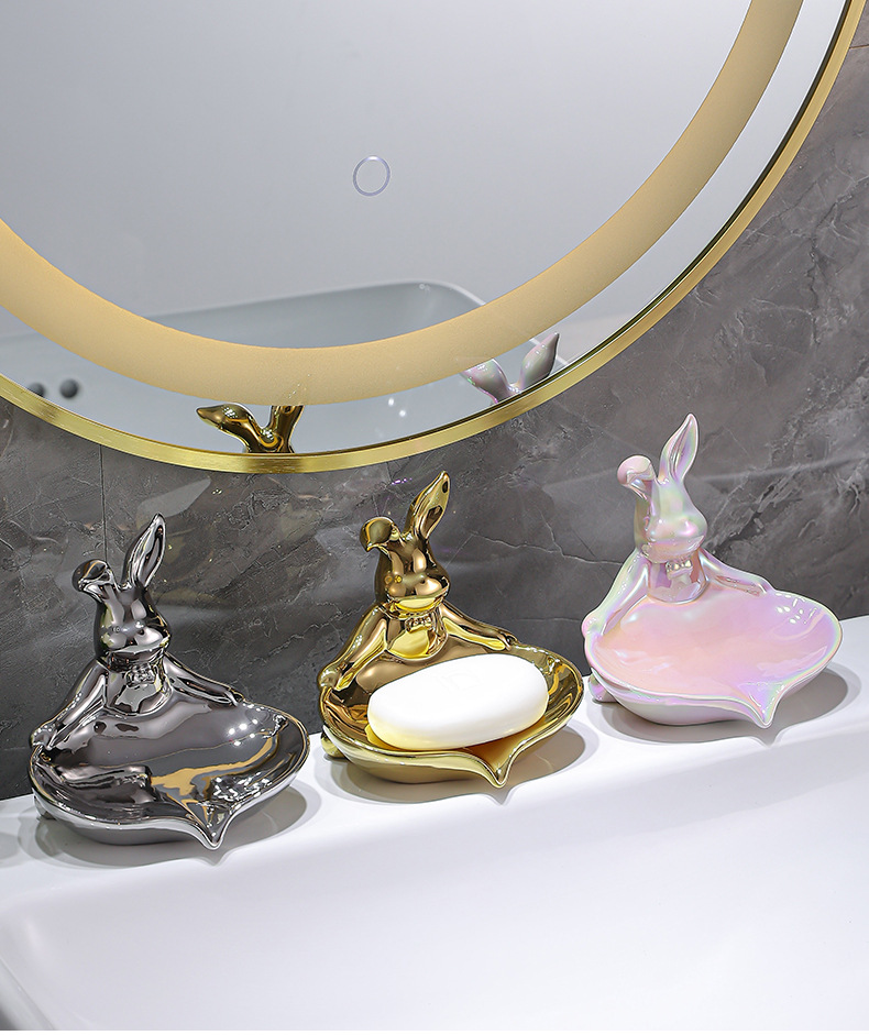 color: sterling silver warped ear rabbit soap dish, pure gold warped ear rabbit soap dish, colorful