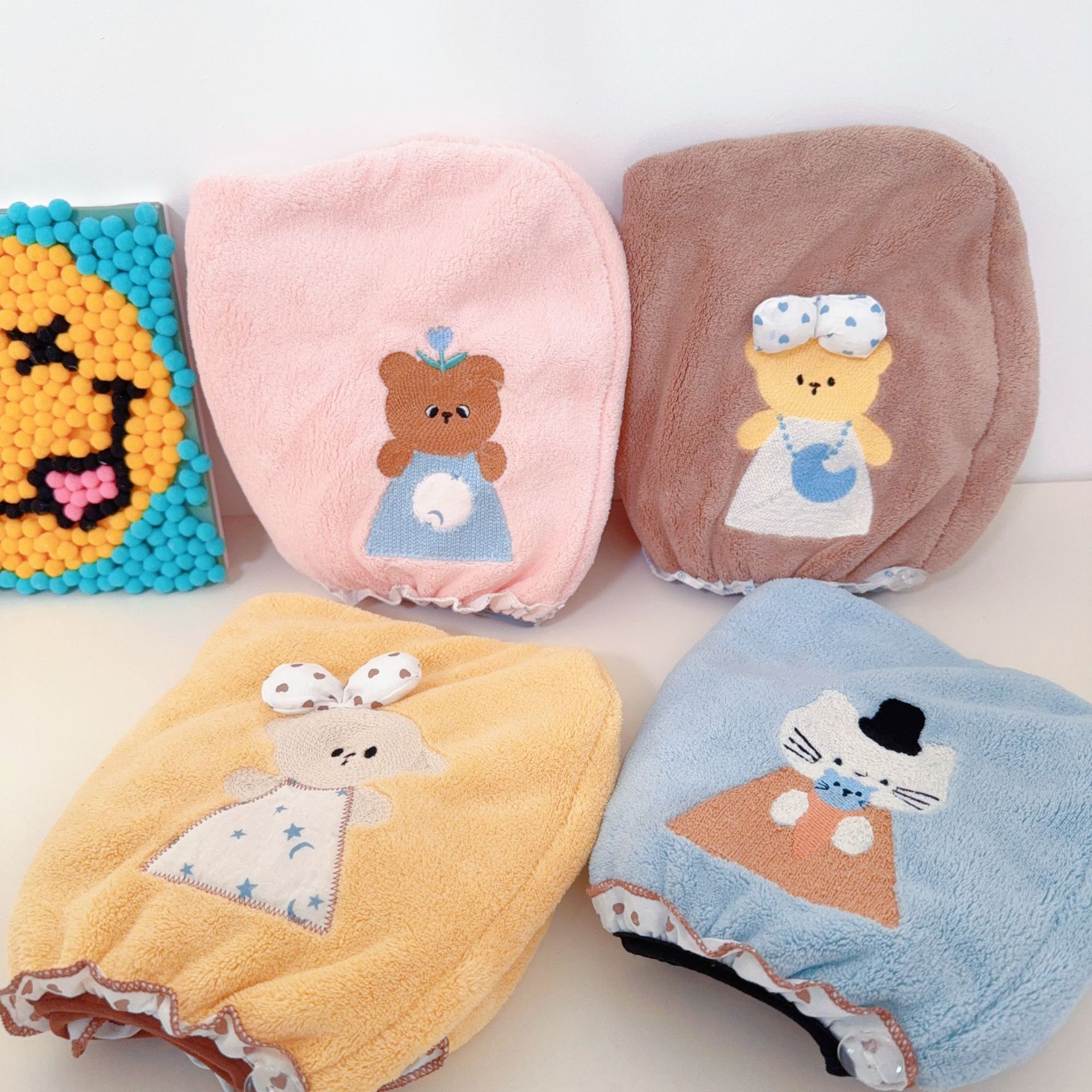 yunegish bear hair-drying cap --- pink