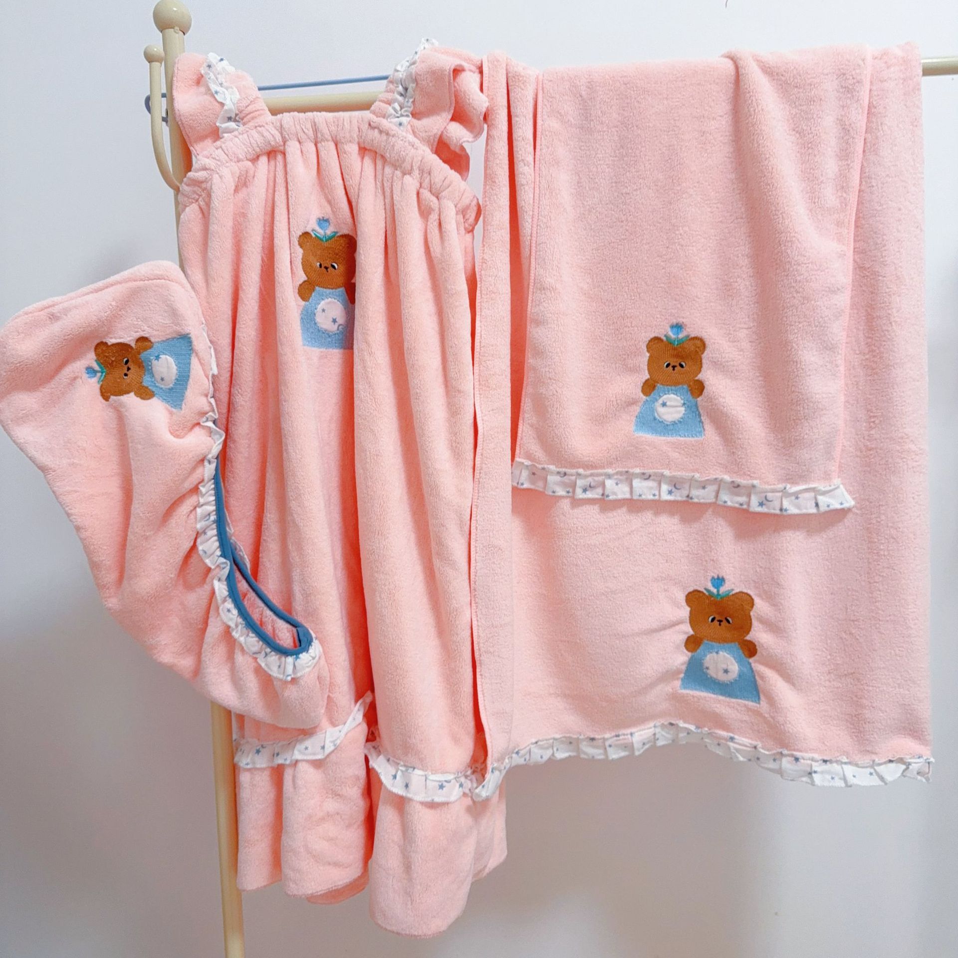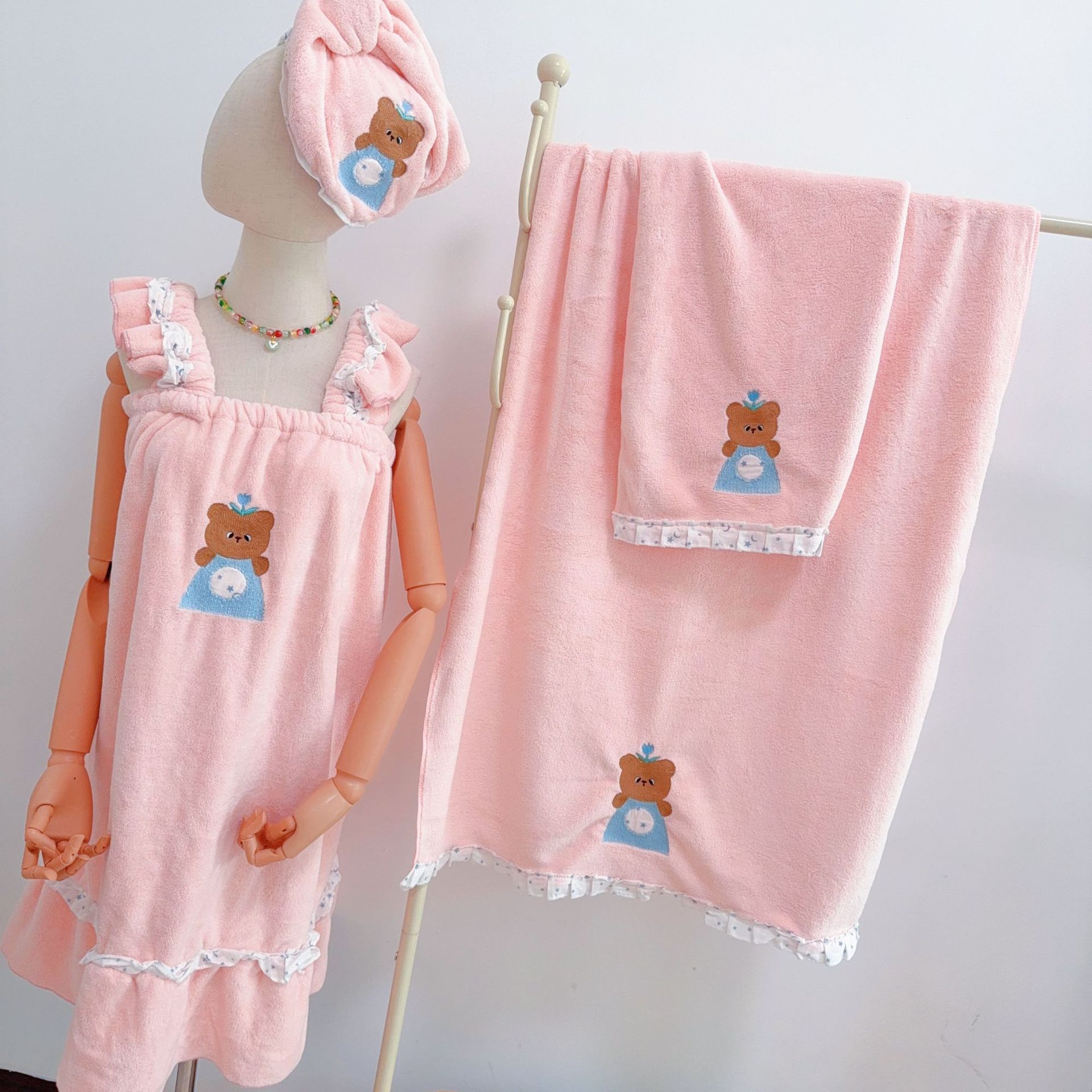 yunegish bear bath towel---pink