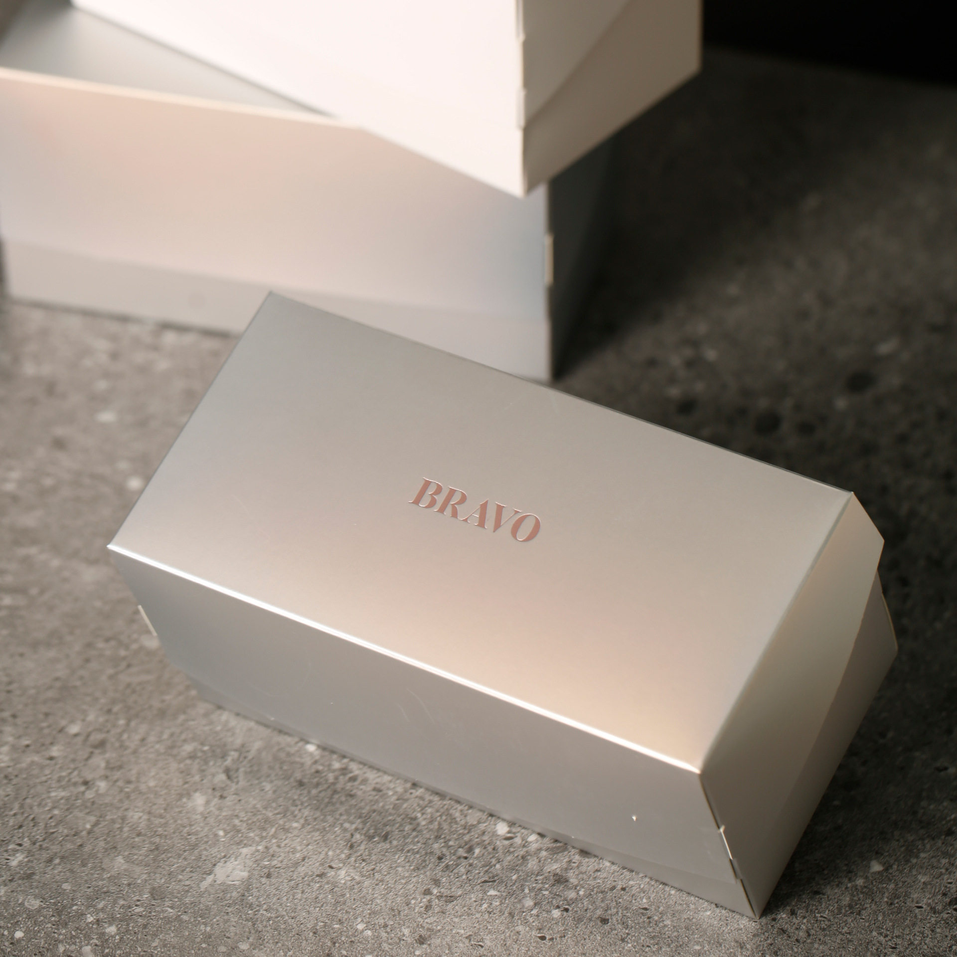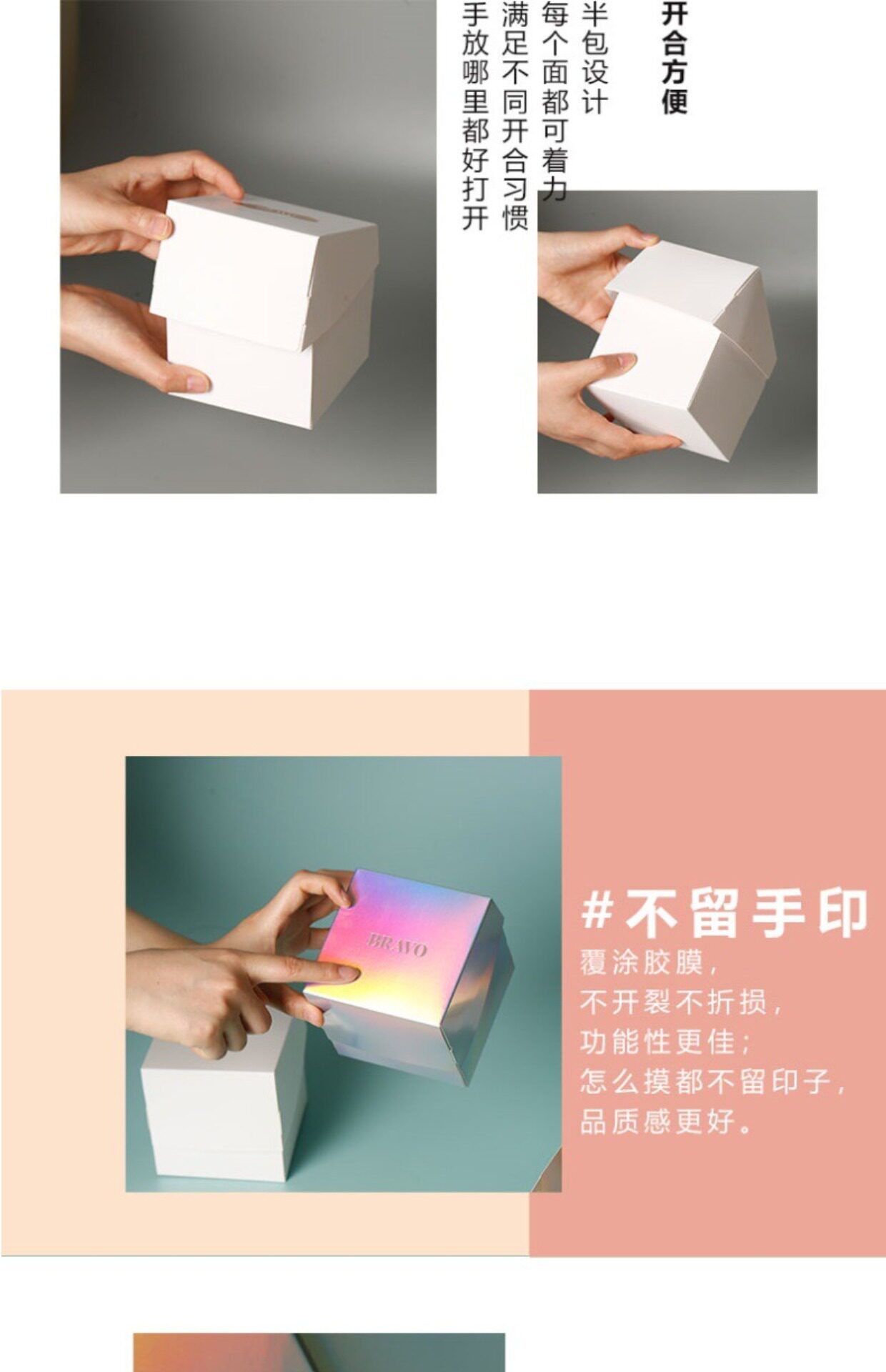 single-compartment white packaging box with laser engraving on the inside and logo on the outside