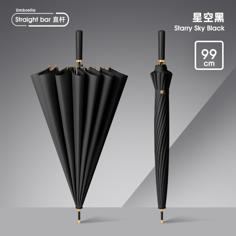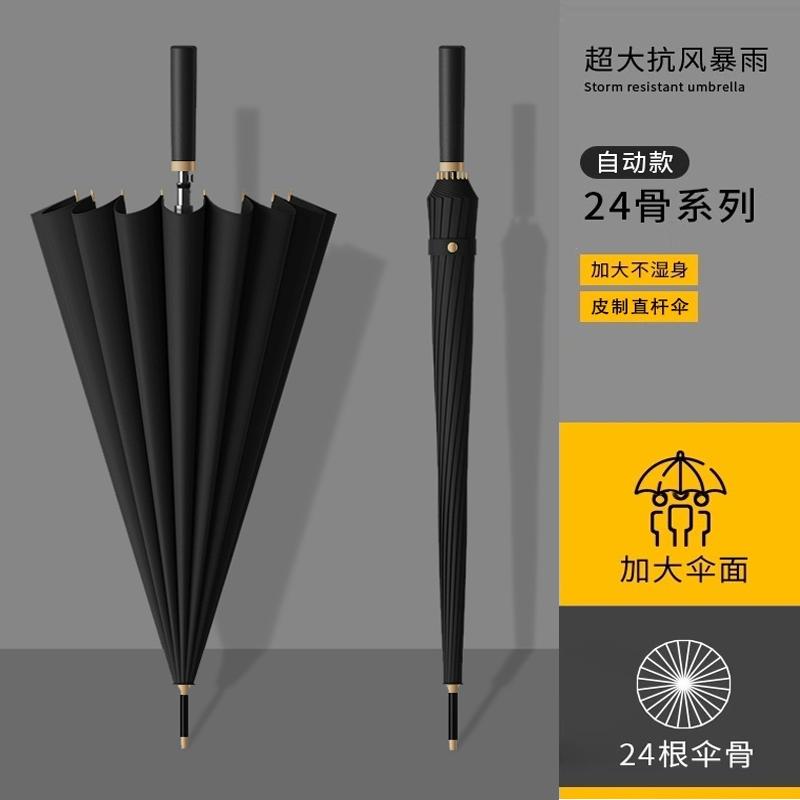 [fiber bone + wind resistant frame + solid wood umbrella handle] [automatic] 24 bones elegant black-free umbrella cover