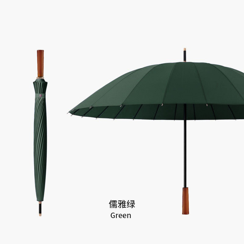 [fiber bone + wind resistant frame + solid wood umbrella handle] [automatic] 24 bone dark green-send umbrella cover