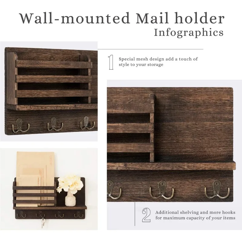 Promotional Factory Outlet Customized Durable Wooden Wall Mounted Mail Key Holder Rack Organizer