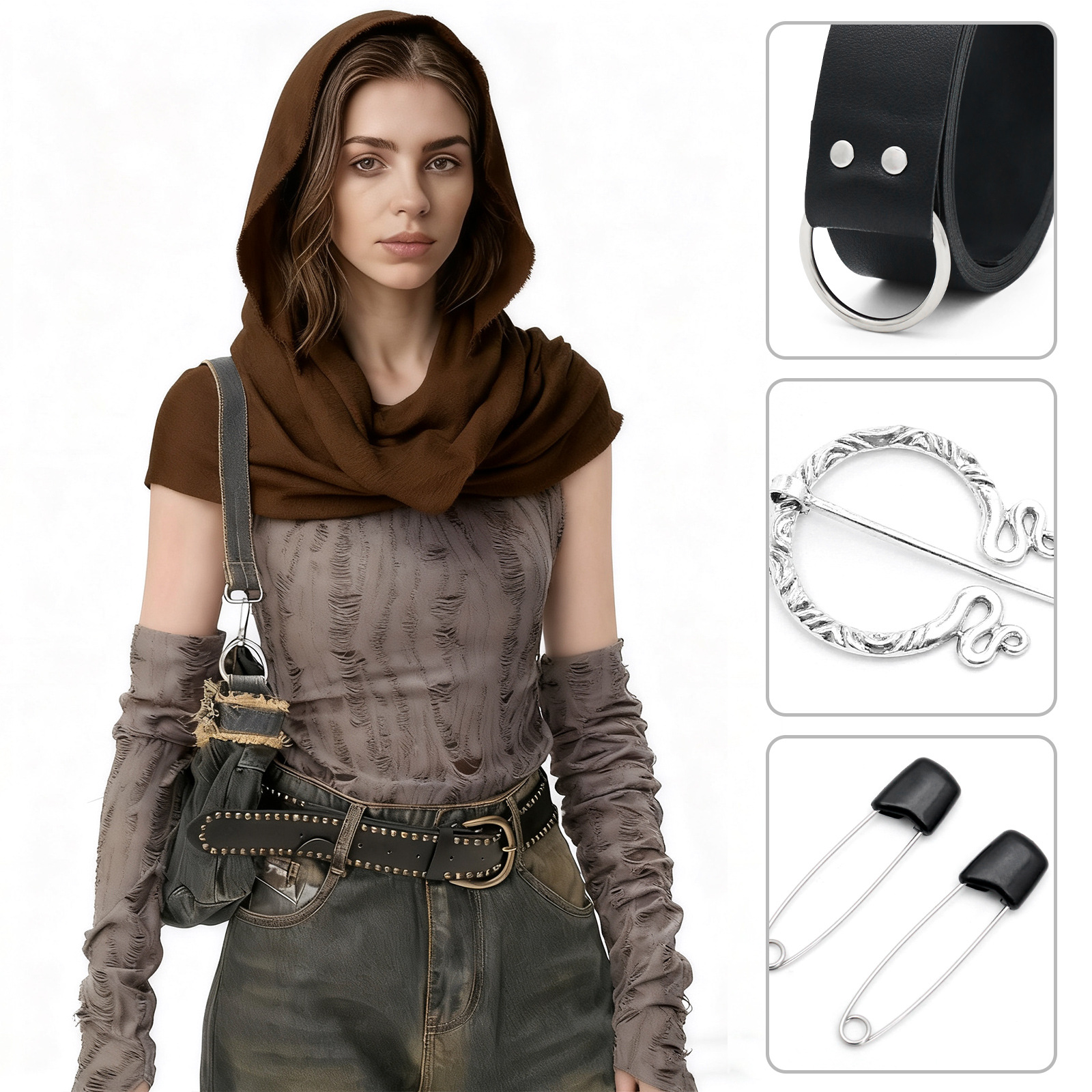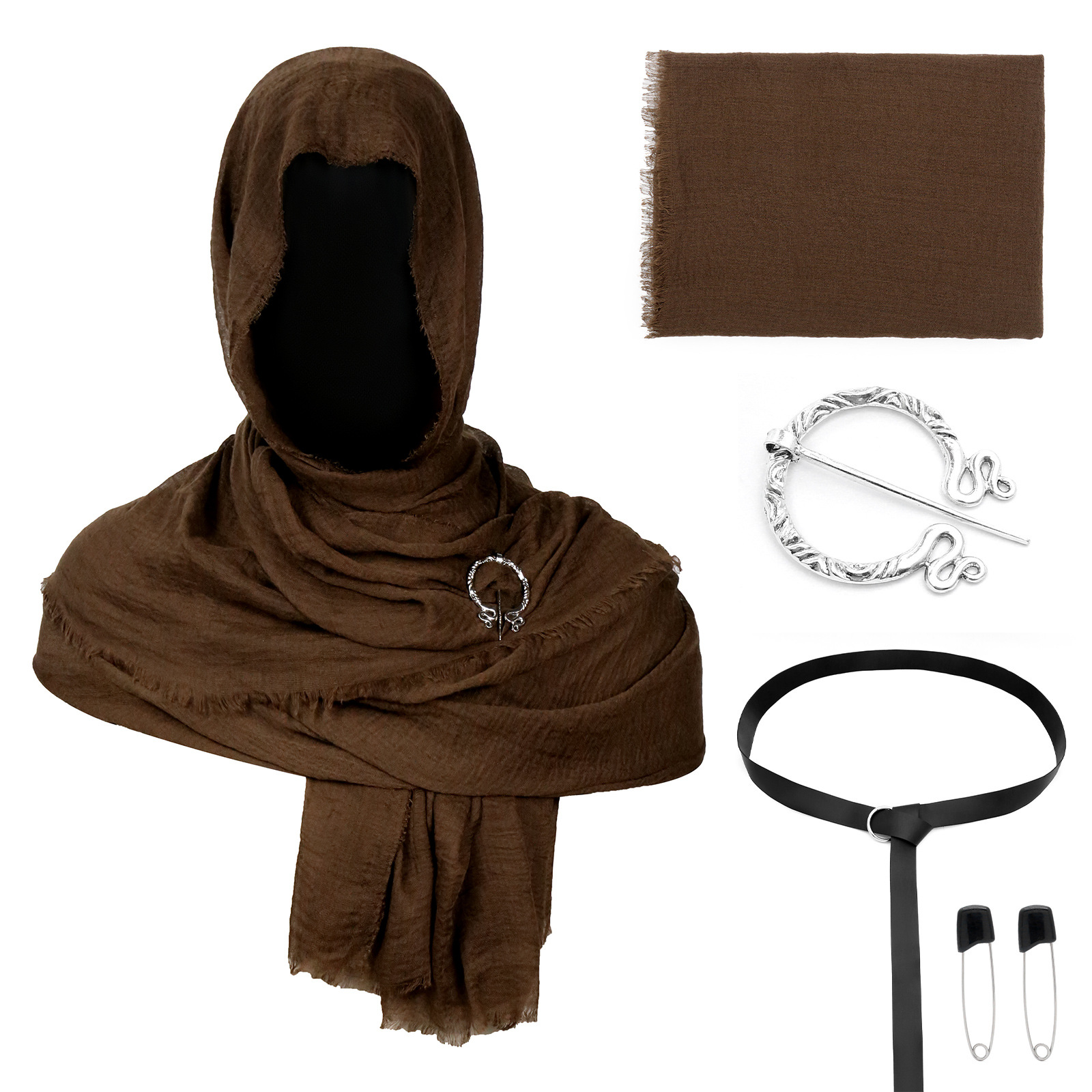 cst155br (brown scarf 180*90cm + brooch + one pair of black pins + 190cm black waist…