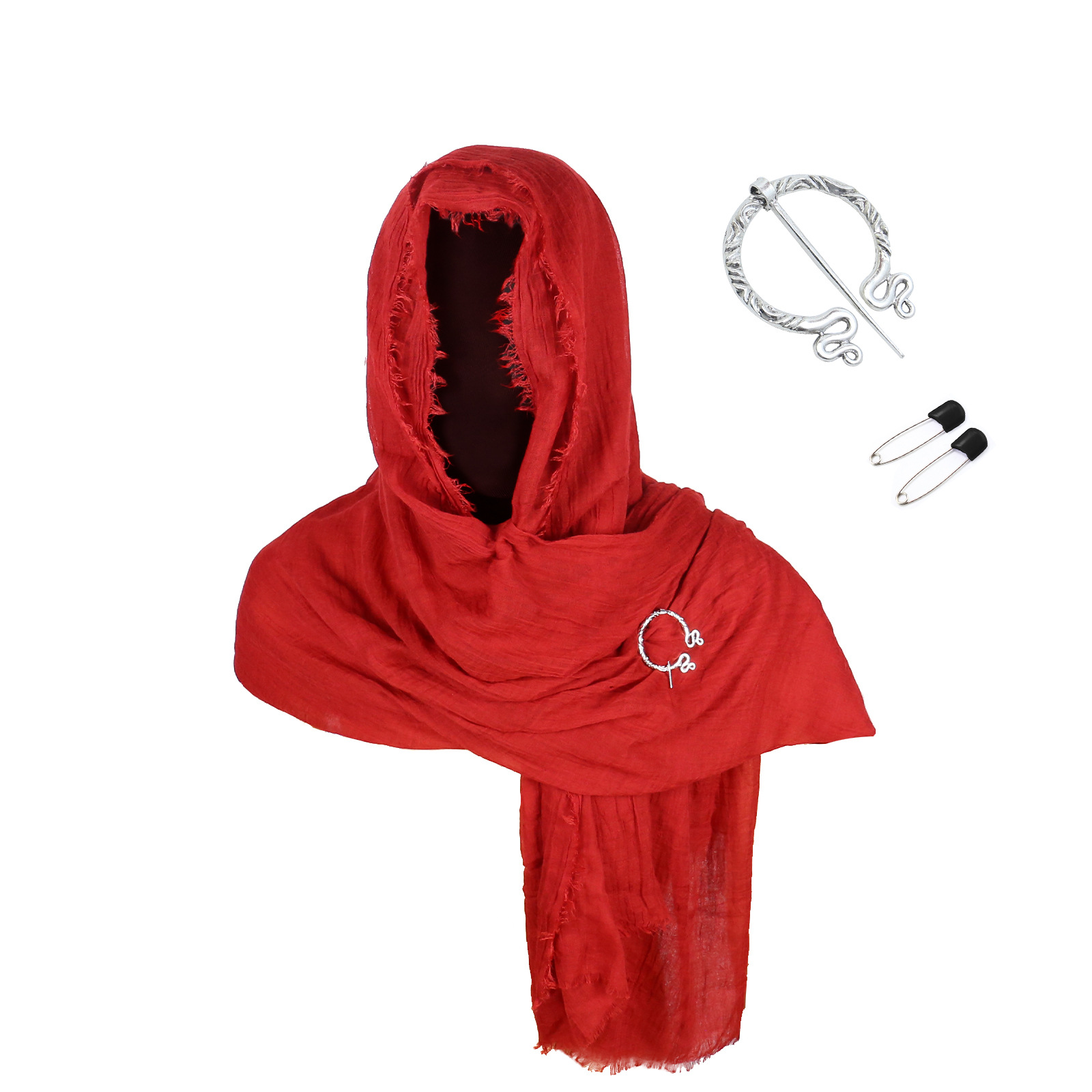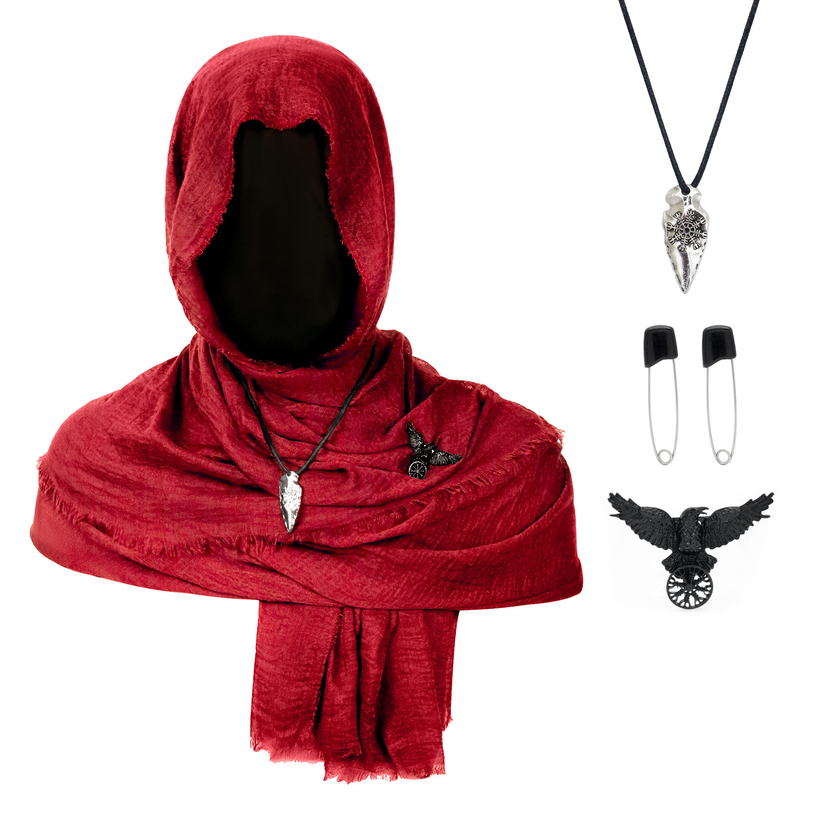 cst154rd (red scarf 180*90cm + black pin 1 pair + black raven scarf buckle + snowflake pendant)