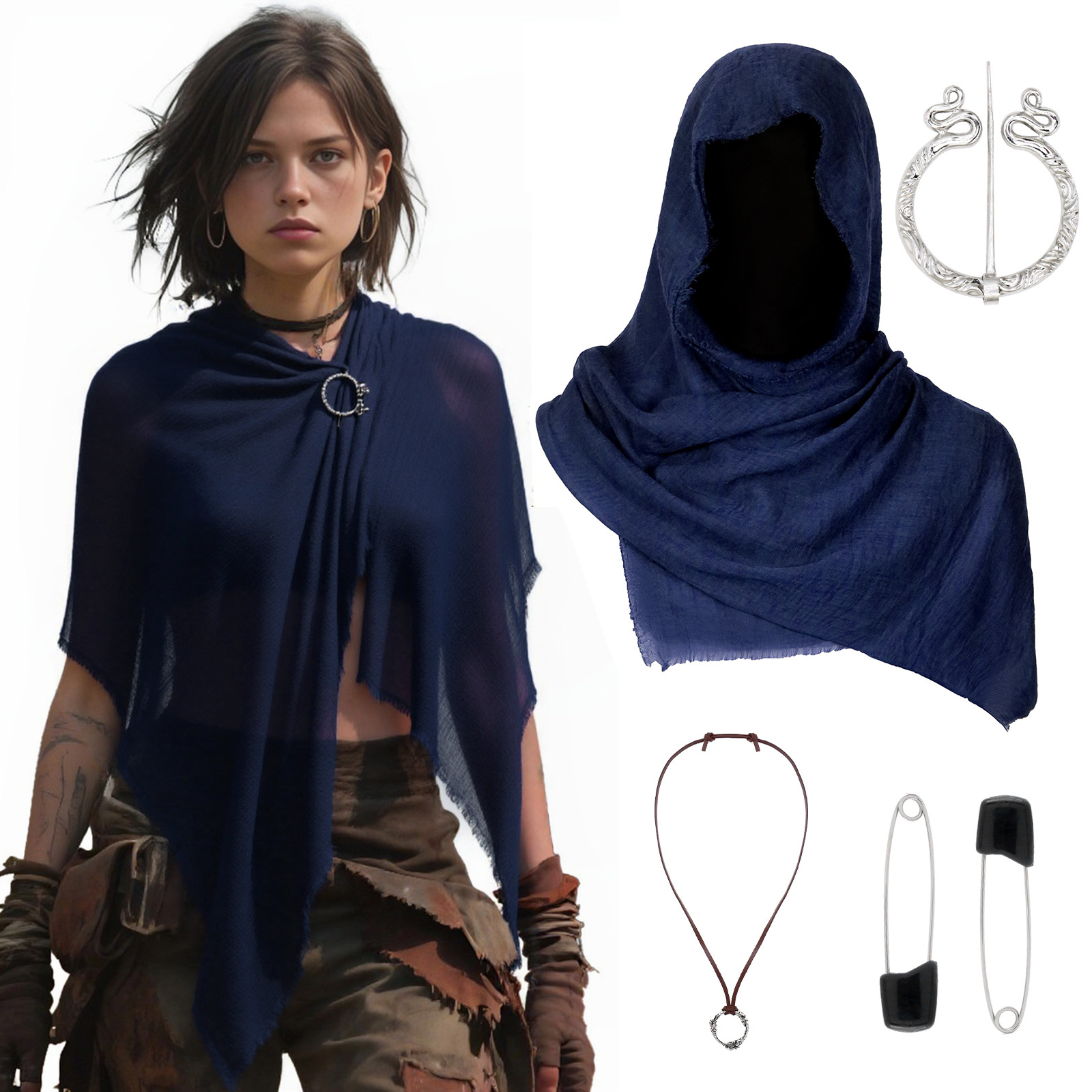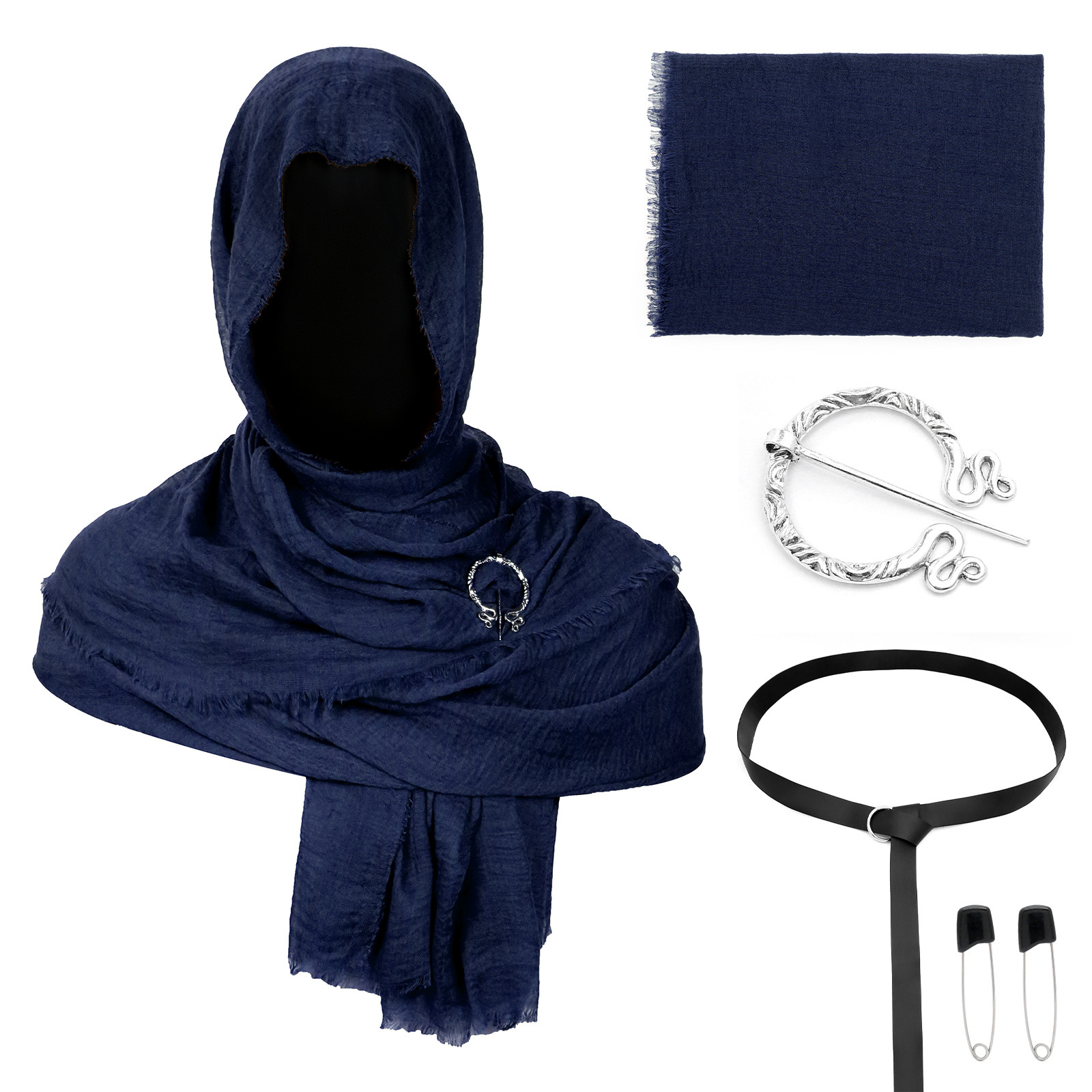 cst155bu (blue scarf 180*90cm + brooch + one pair of black pins + 190cm black waist…